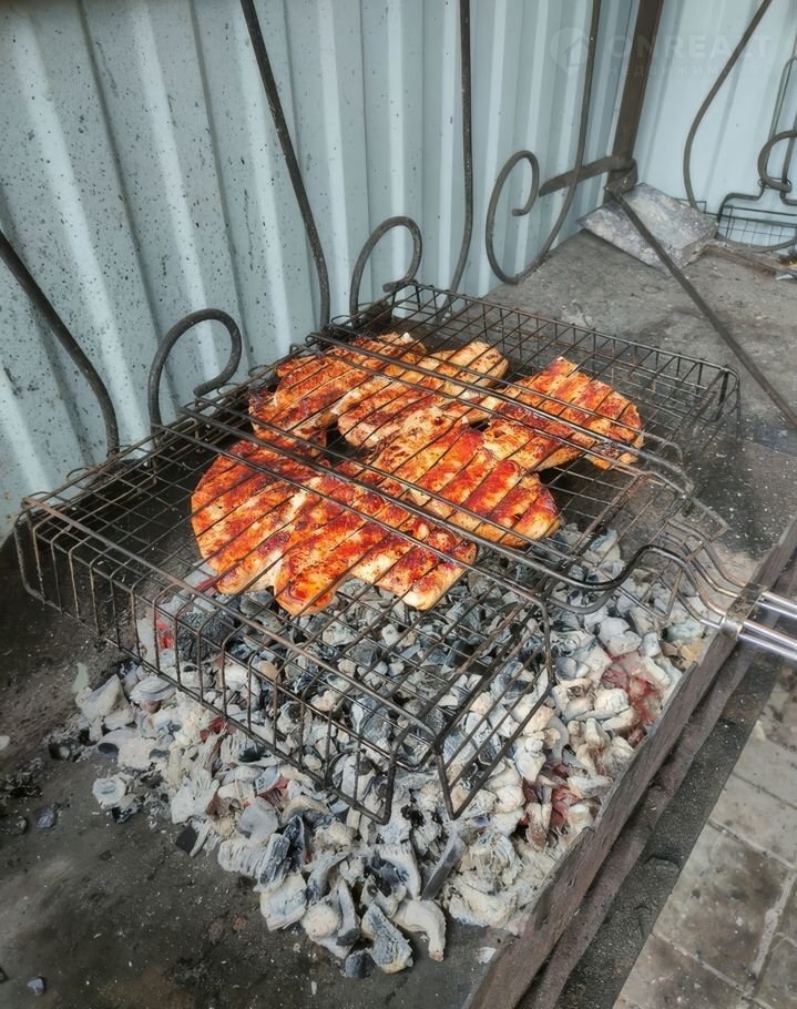 Крытая, очень удобная мангальная зона с освещением! решетка, шампуры.