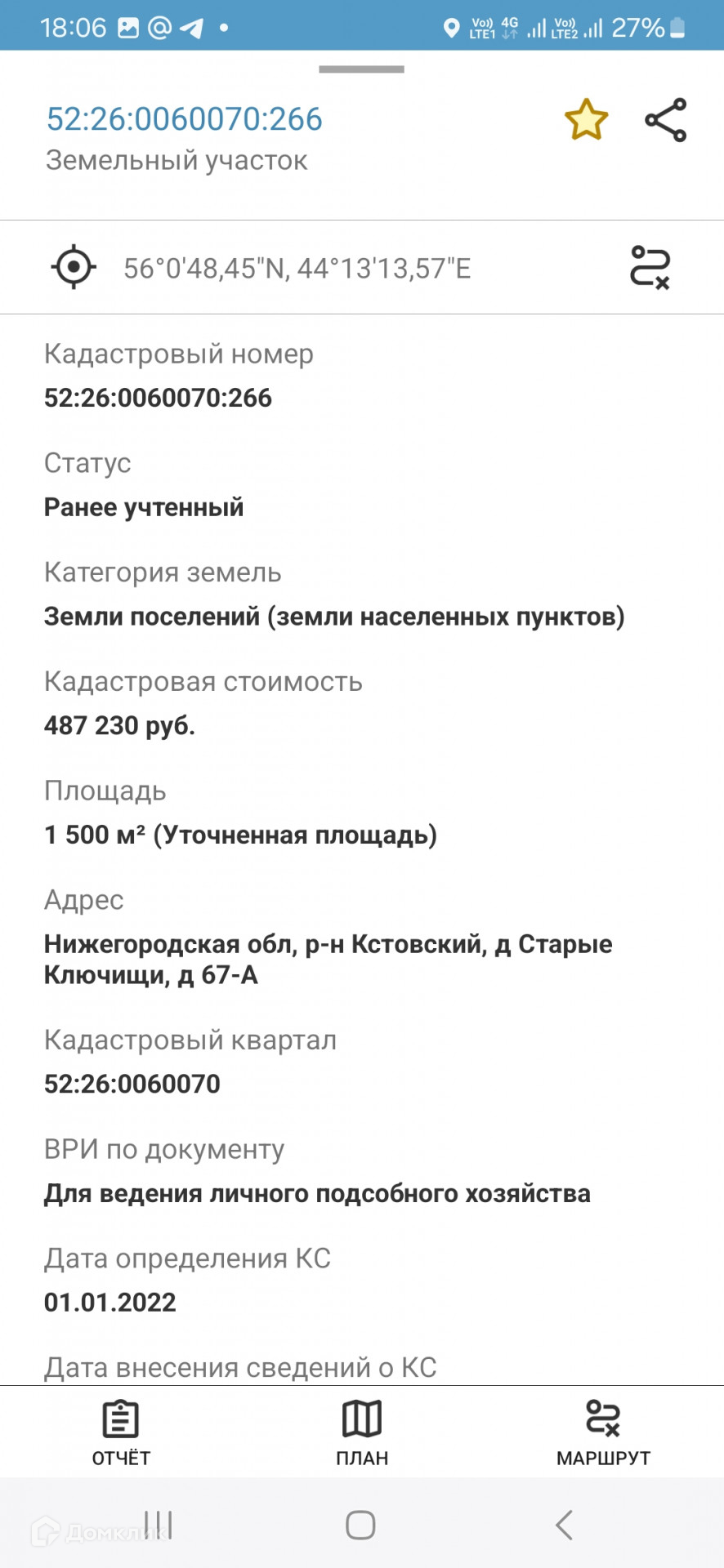 или ввести адрес Нижегородская обл, р-н Кстовский, д Старые Ключищи, д 67