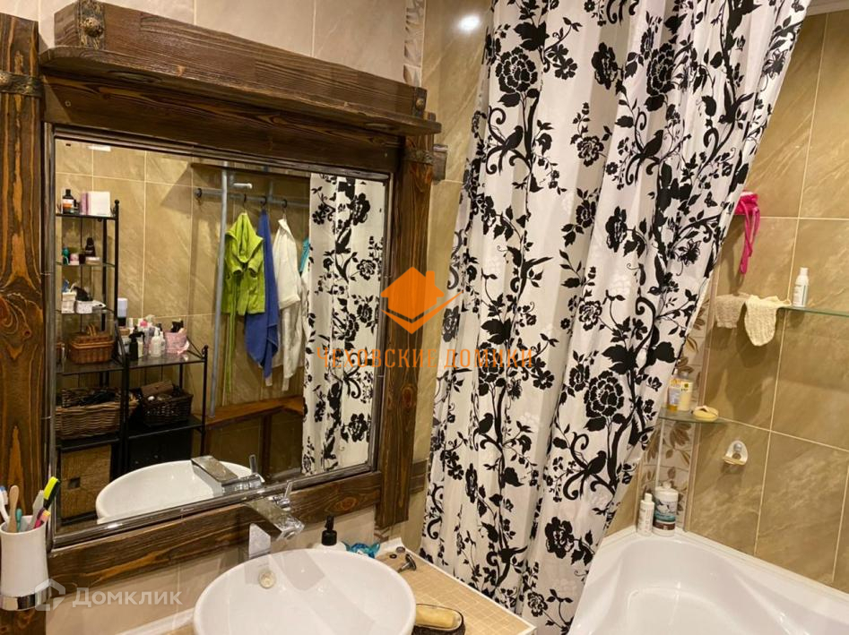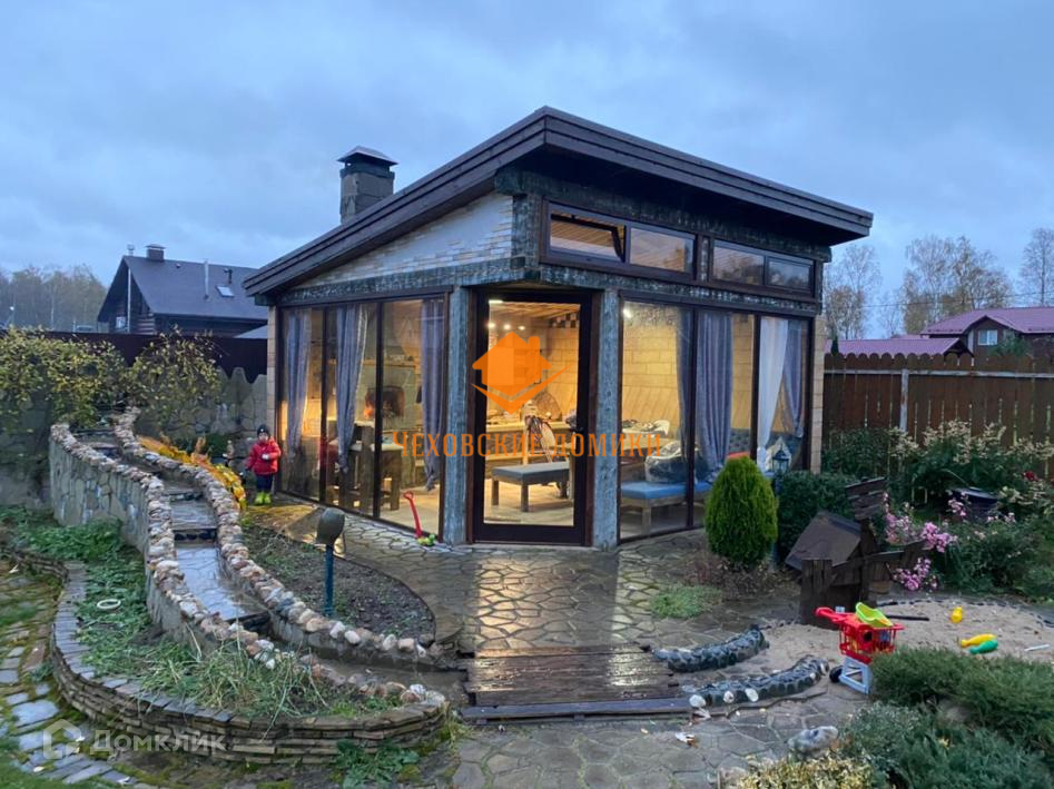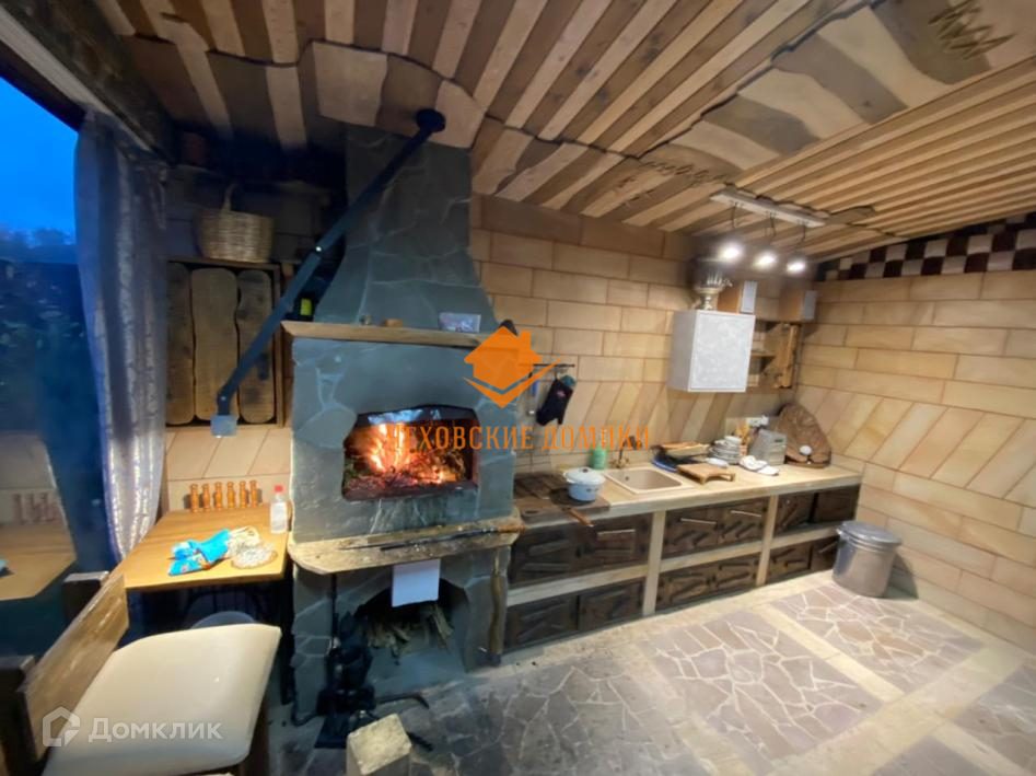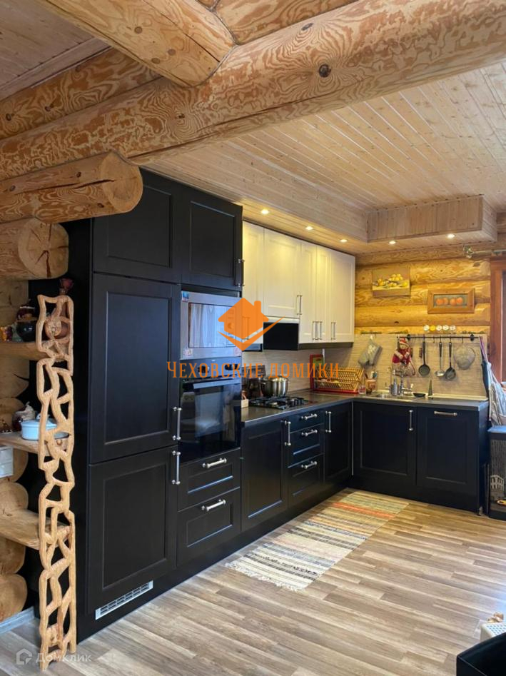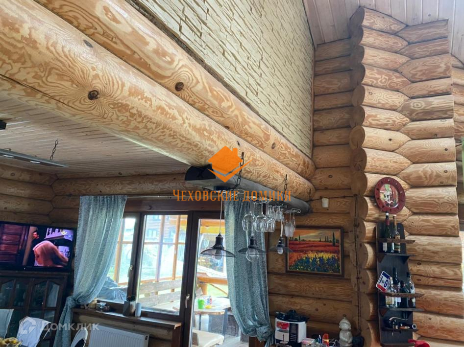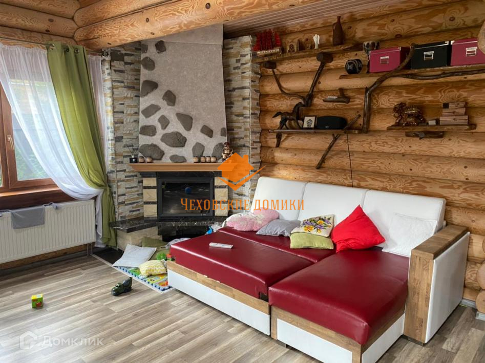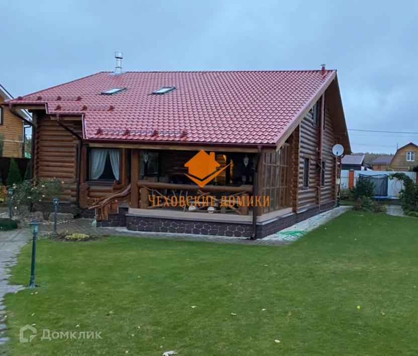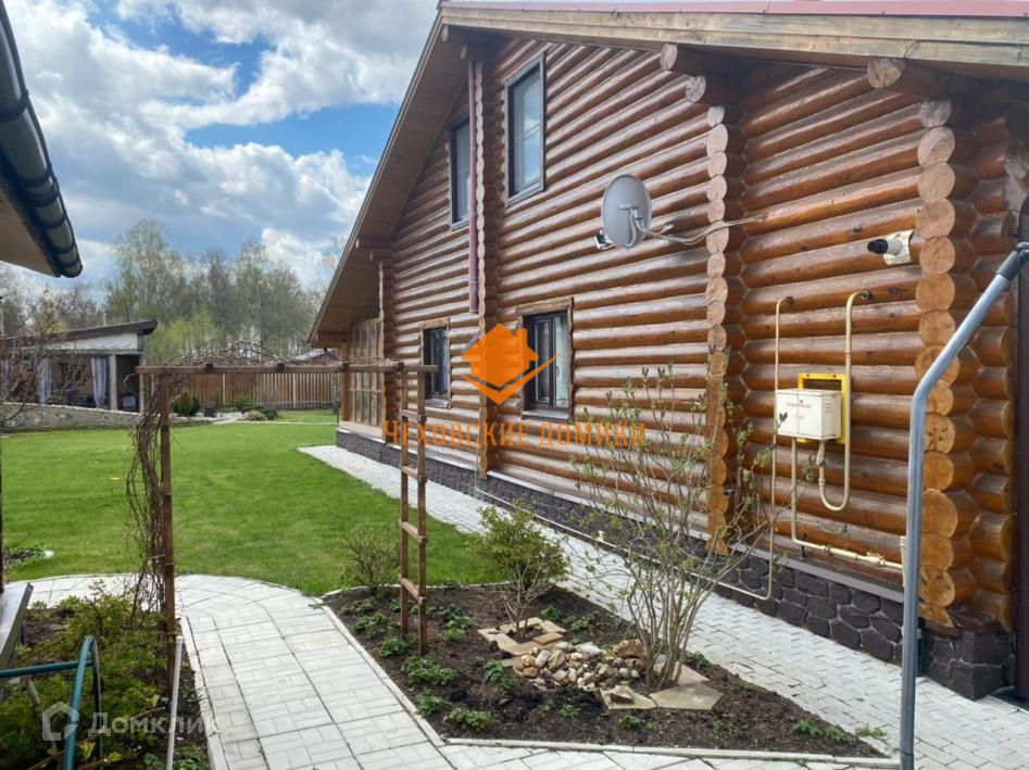 Дом в КП «Старые Кузьмёнки». Симферопольское шоссе 65 км от МКАД. Дом в отличном состоянии, площадь 230 кв.м. Год постройки 2013 Материал стен - бревно ручной рубки, кровля металлочерепица. Коммуникации: магистральный газ, электричество, центральное водоснабжение, канализация септик, интернет оптоволокно. Дом очень экономичный. 1-й этаж - прихожая, уютная гостиная с камином, кухня-столовая с выходом на веранду и участок, спальня, гардеробная комната, тех. помещение, с/у; 2-ой этаж 3 спальни, с/у; Участок 10 соток. Ландшафтный дизайн. На участке: баня 6х6: 1-й этаж парилка, санузел, комната отдыха, 2-ой этаж комната. Полностью застекленная барбекю. Большой и тёплый хозблок, состоящий из 2х помещений: для квадроцикла с воротами и мастерская. Подъездная дорога: асфальт до дома, круглогодичный подъезд. Безопасность - общее ограждение, шлагбаум, пропускная система, видеонаблюдение, охраняемый коттеджный поселок. Невысокая абонентская плата 3500 в месяц. Приличное окружение. Многие проживают постоянно. Все коммуникации проложены под землёй. Есть детская, спортивная площадки. В пешей доступности (15 мин.) Сафоновское водохранилище. Недалеко развитая инфраструктура: д. Старые Кузьмёнки, г. Чехов, г. Серпухов.