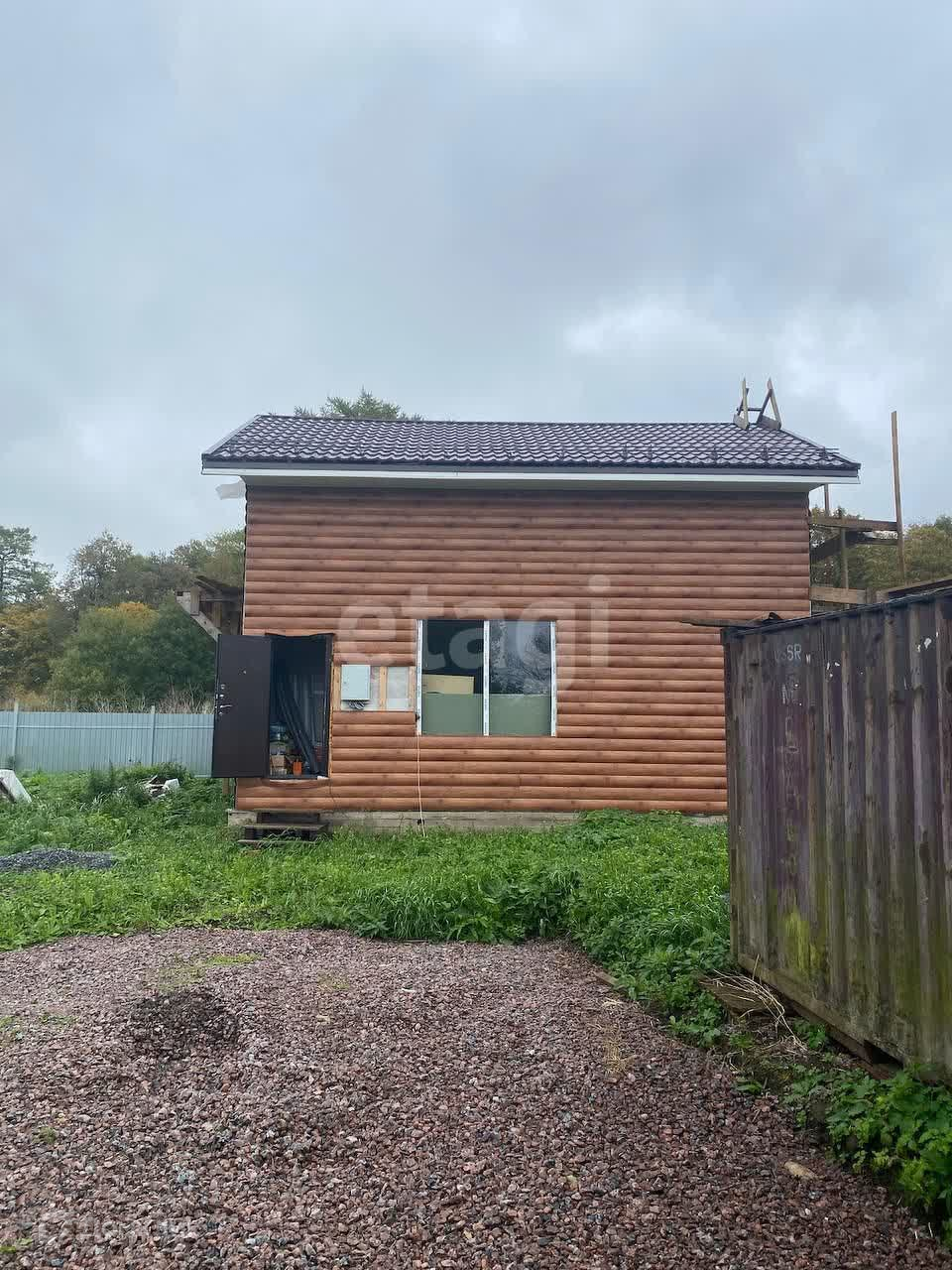 Дом Каркасный. Утепление 250мм. Два этажа. Внутренняя отделка первого этажа - стены зашиты ОСБ плитой и вторым слоем гипсокартон. На второй этаж Отделочные материалы все закуплены. В 20-ти футовом контейнере на участке вся сантехника, ванна, душевая кабина, унитаз.На участке есть: