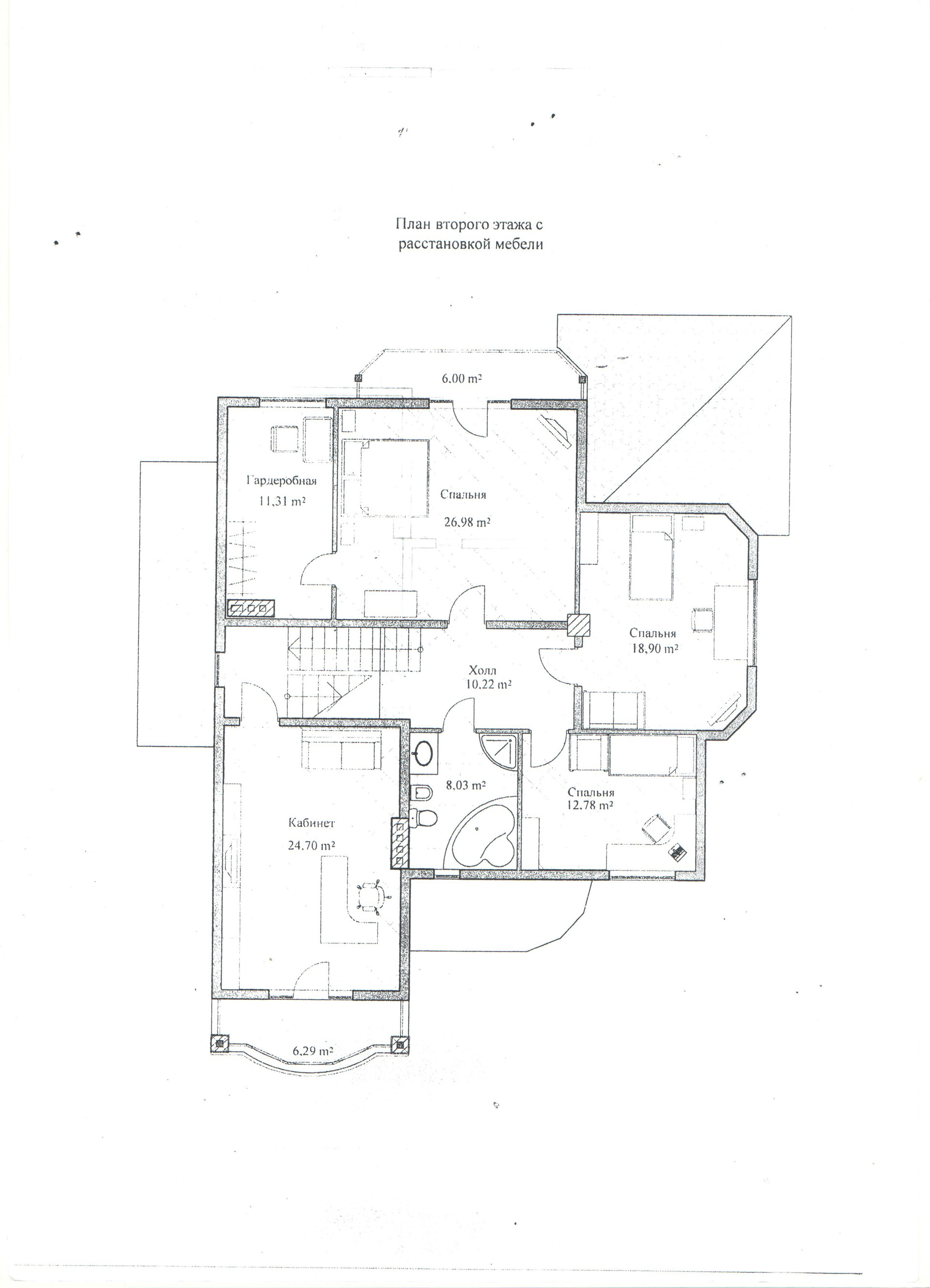 Три спальни, кабинет, санузел, на втором этаже. В подвале находится гараж, котельная, есть место для размещения бани, бильярдной, комнаты отдыха.