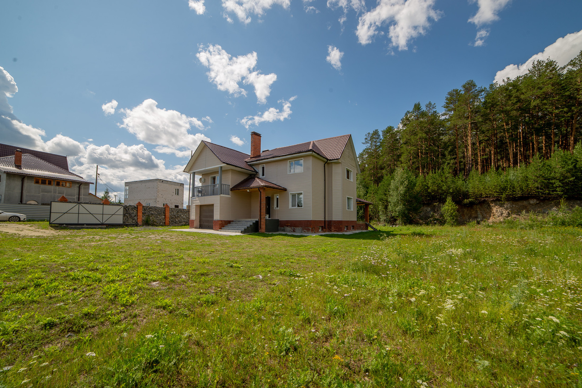 Продается два участка  земли по 20 соток, на одном из них находится уютный деревянный дом, состоящий из двух этажей и подвала.  Участки  окружены соснами. Находятся на границе живописного пруда.