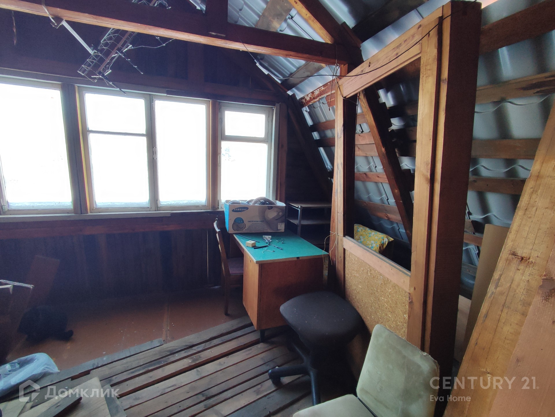 Дом из бруса с мансардным этажом, есть веранда около 13 кв.м. в которую заведена вода. Сзади пристроен сарай для хранения инвентаря.