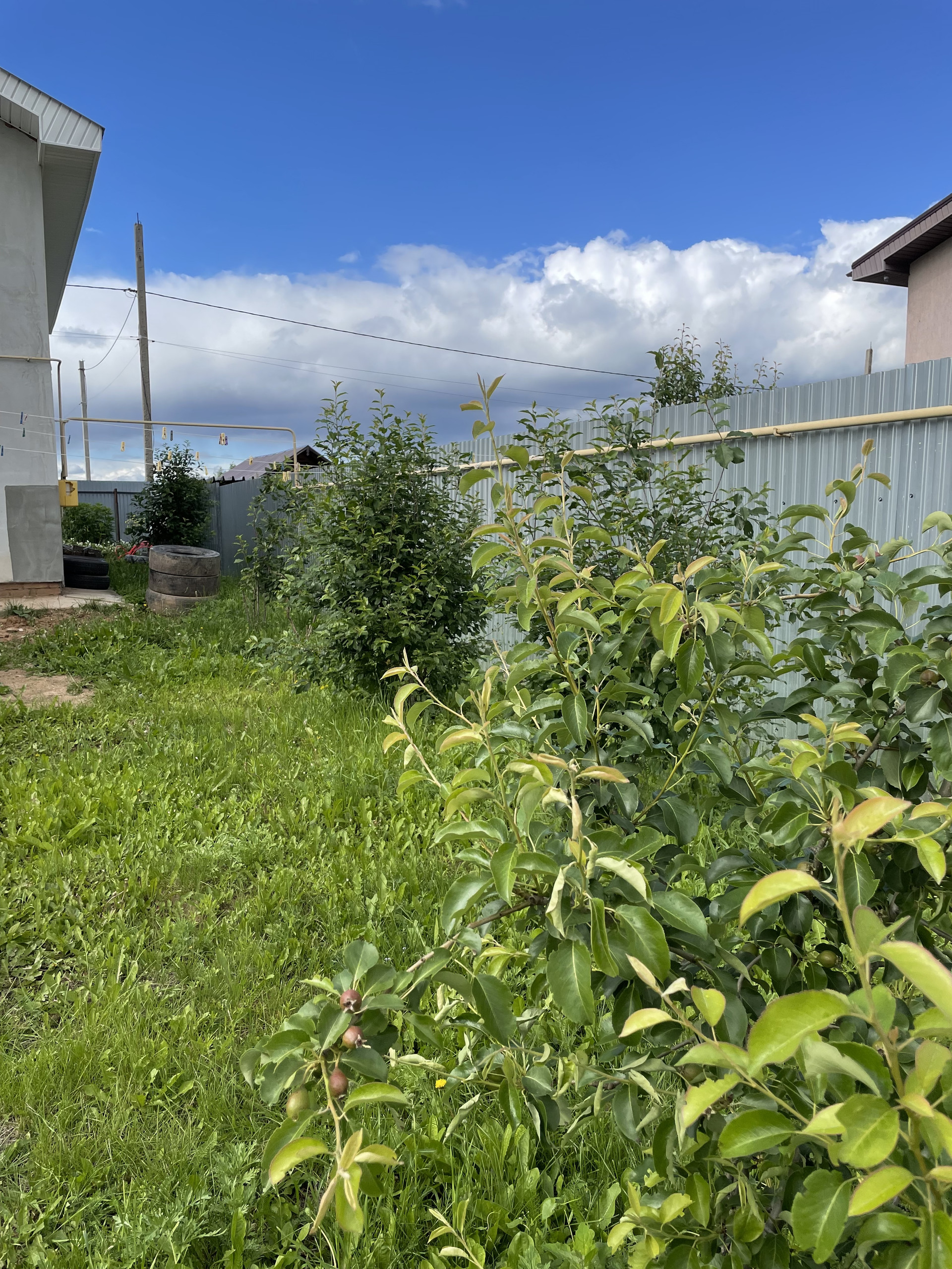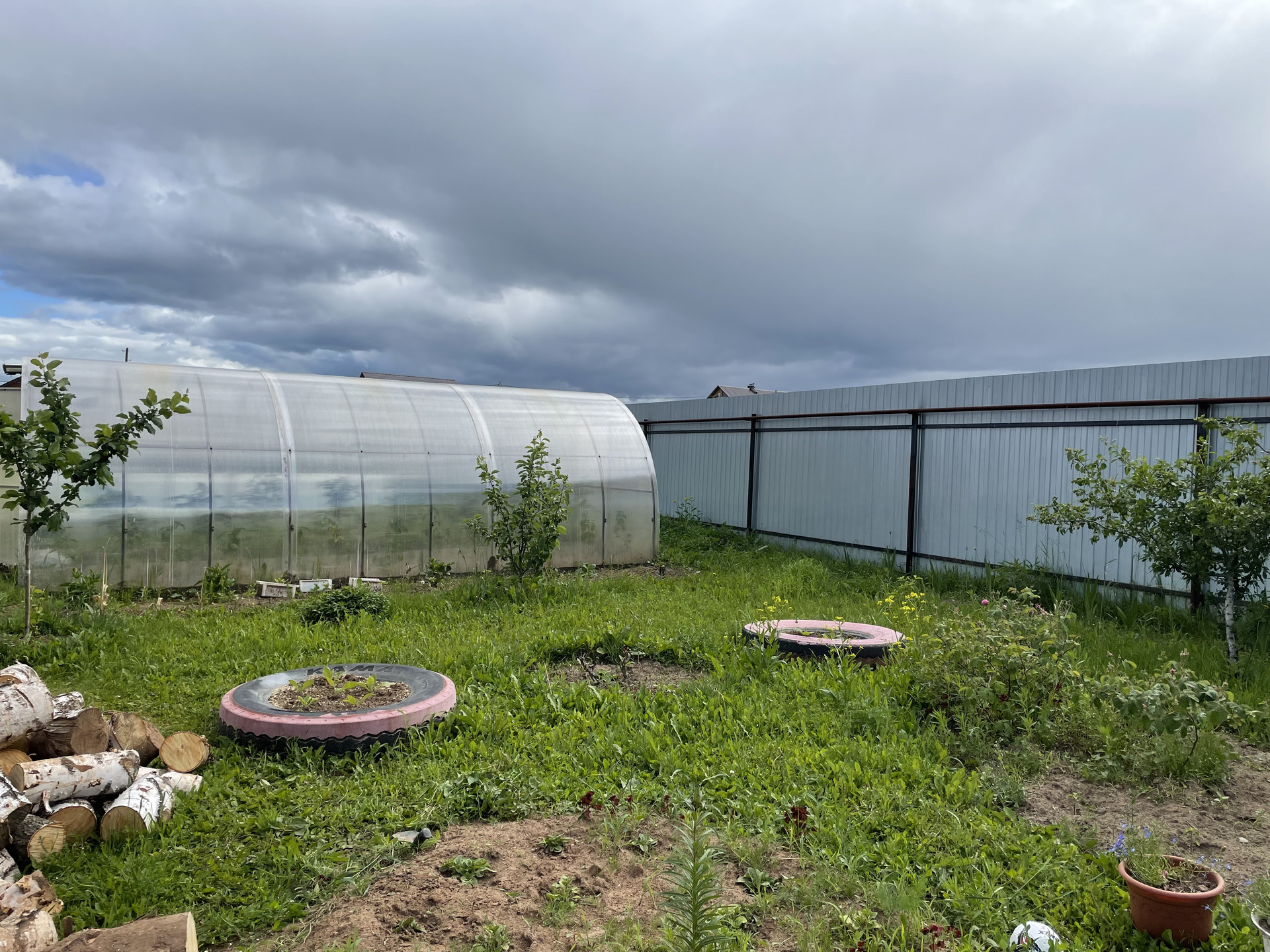 Много различных плодовых деревьев. Имеется теплица.