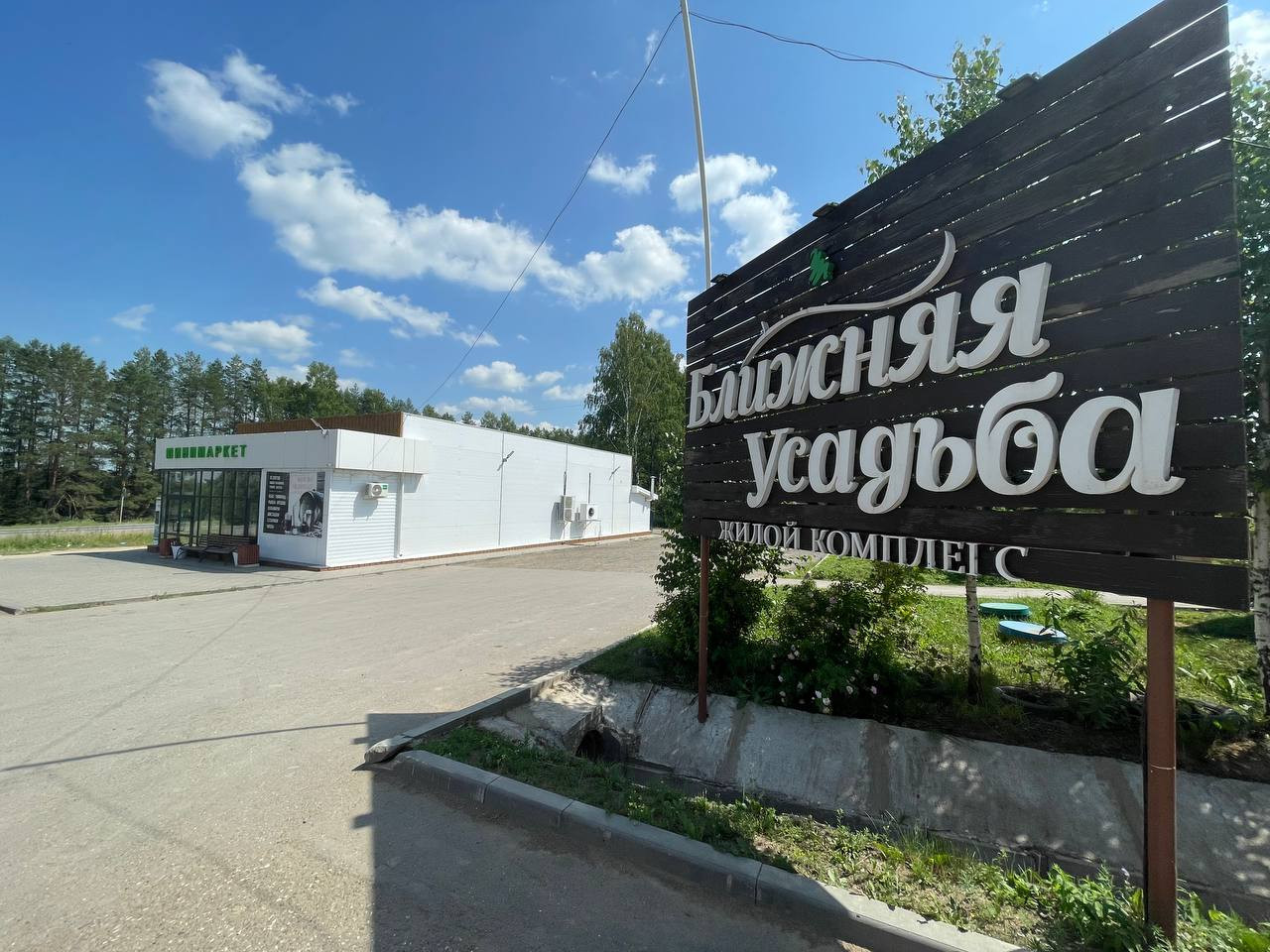 Шлагбаум при въезде в поселок, кпп.