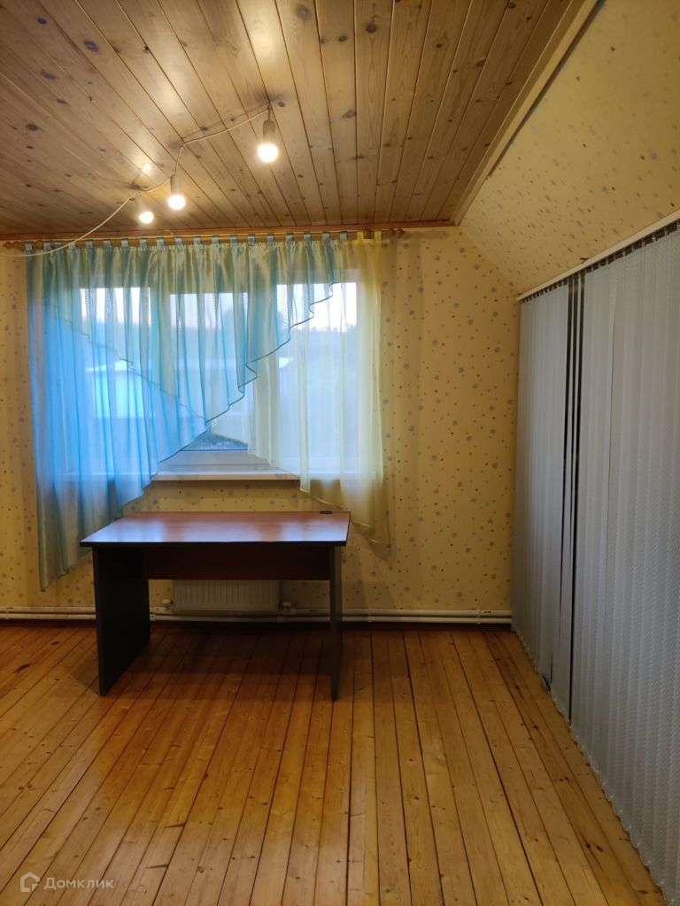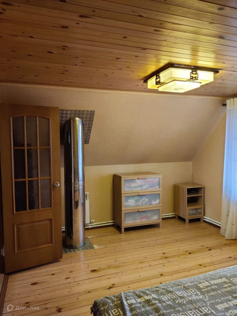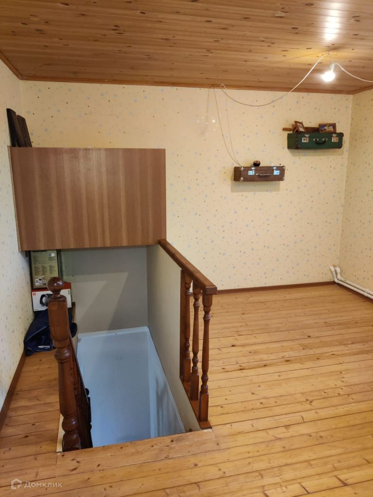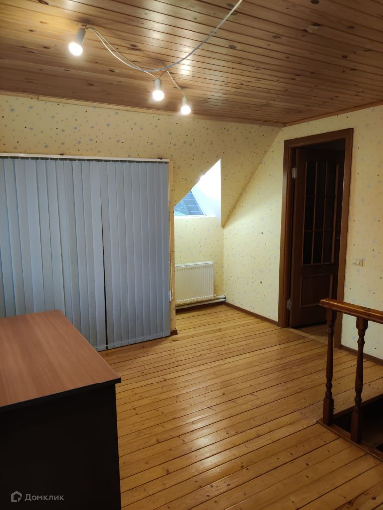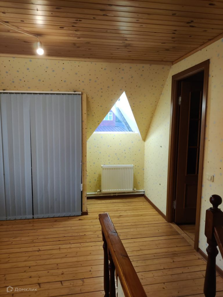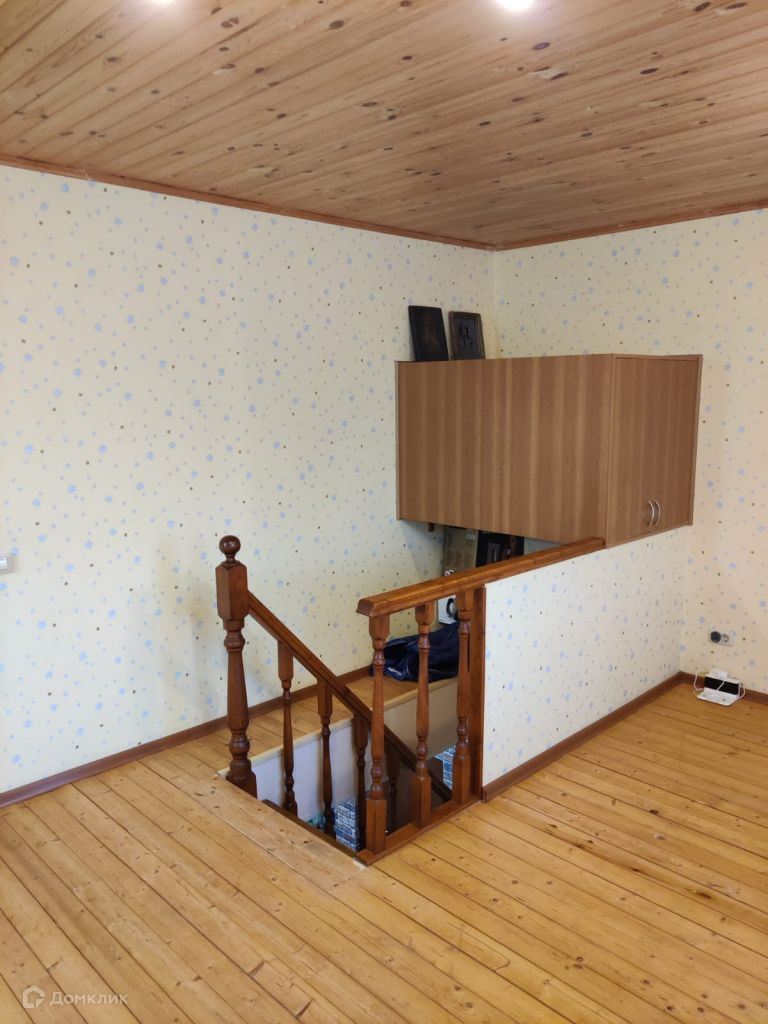 Двухэтажный, сруб, утеплен, снаружи металлосайдинг, внутри гипсокартон, высота потолков первого этажа 2, 7 м. второго 2, 3 м. есть подвал.