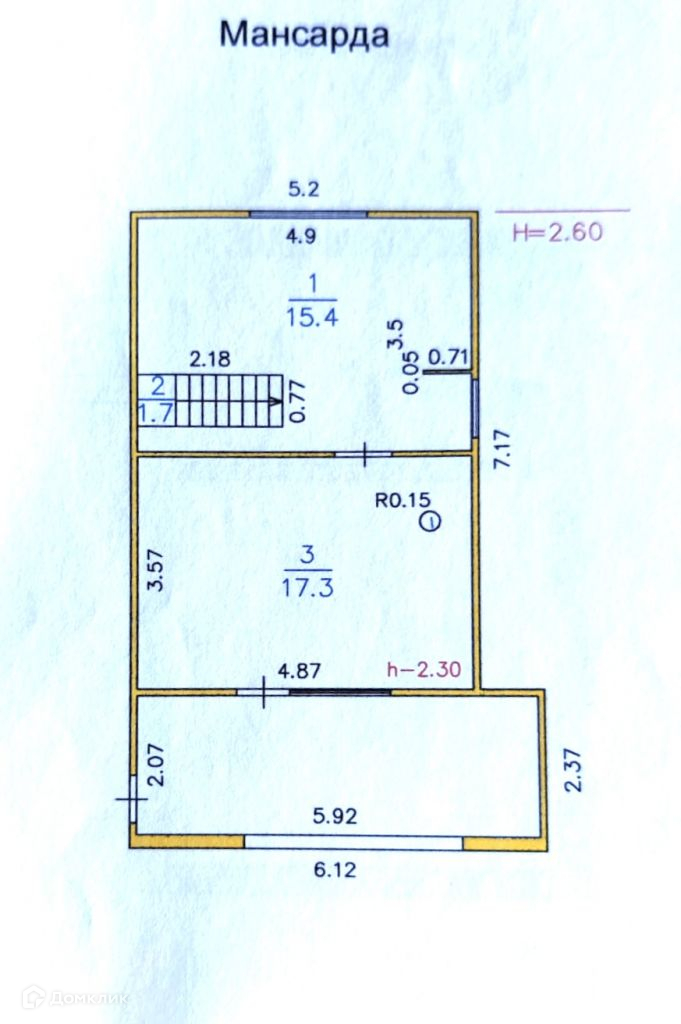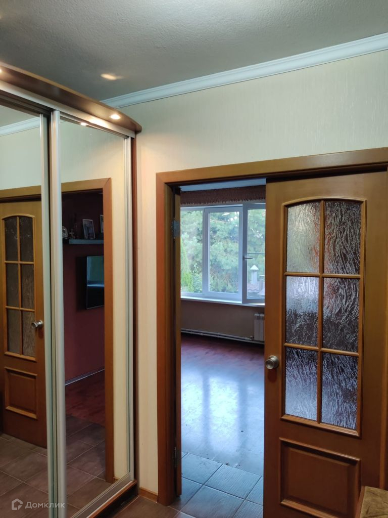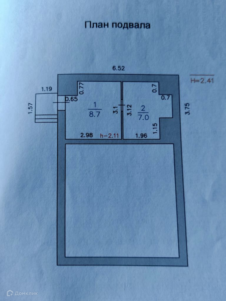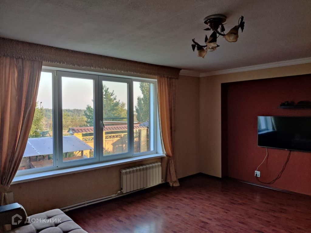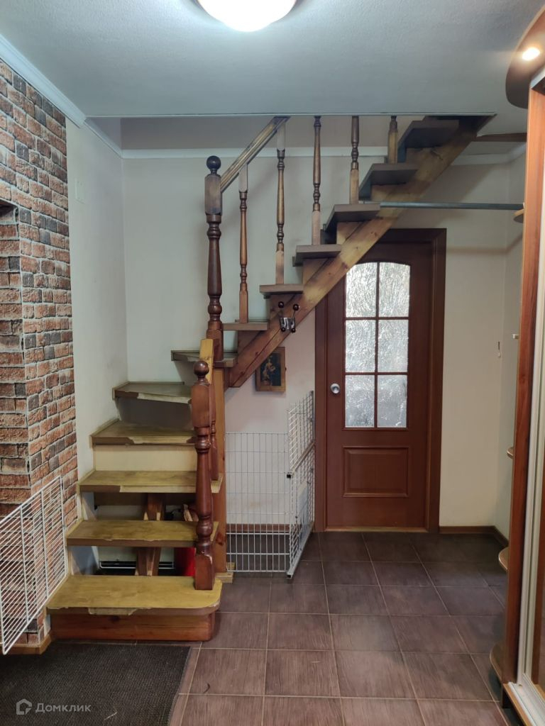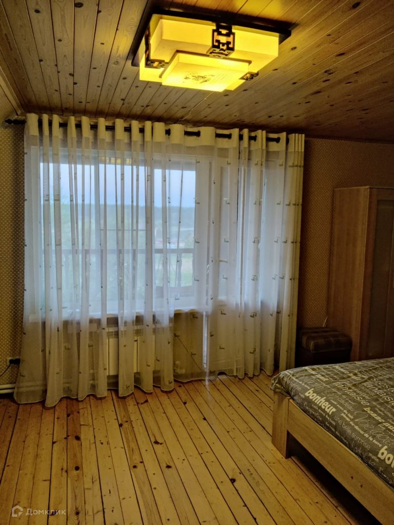 Двухэтажный, сруб, утеплен, снаружи металлосайдинг, внутри гипсокартон, высота потолков первого этажа 2, 7 м. второго 2, 3 м. есть подвал.