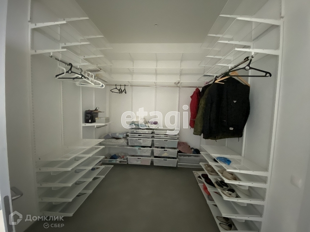 На чердаке дополнительно оборудована зона хранения с полками и рейлингами.