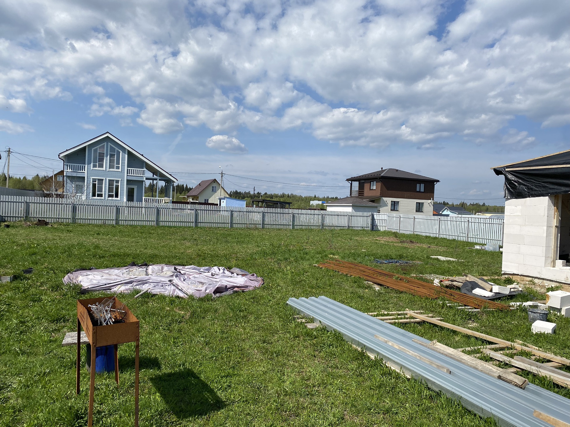 - По периметру установлен забор без фронтальной части.