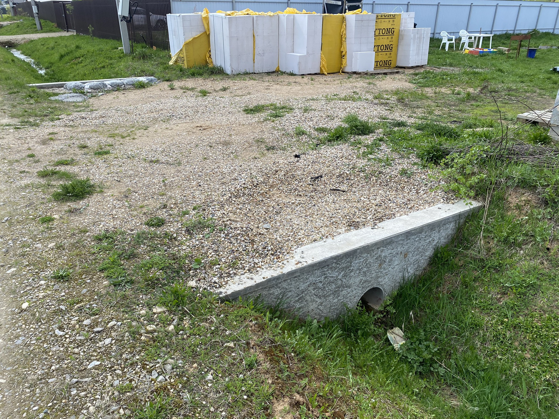 - Заезд 9м, гравий, по бокам бетонные стенки