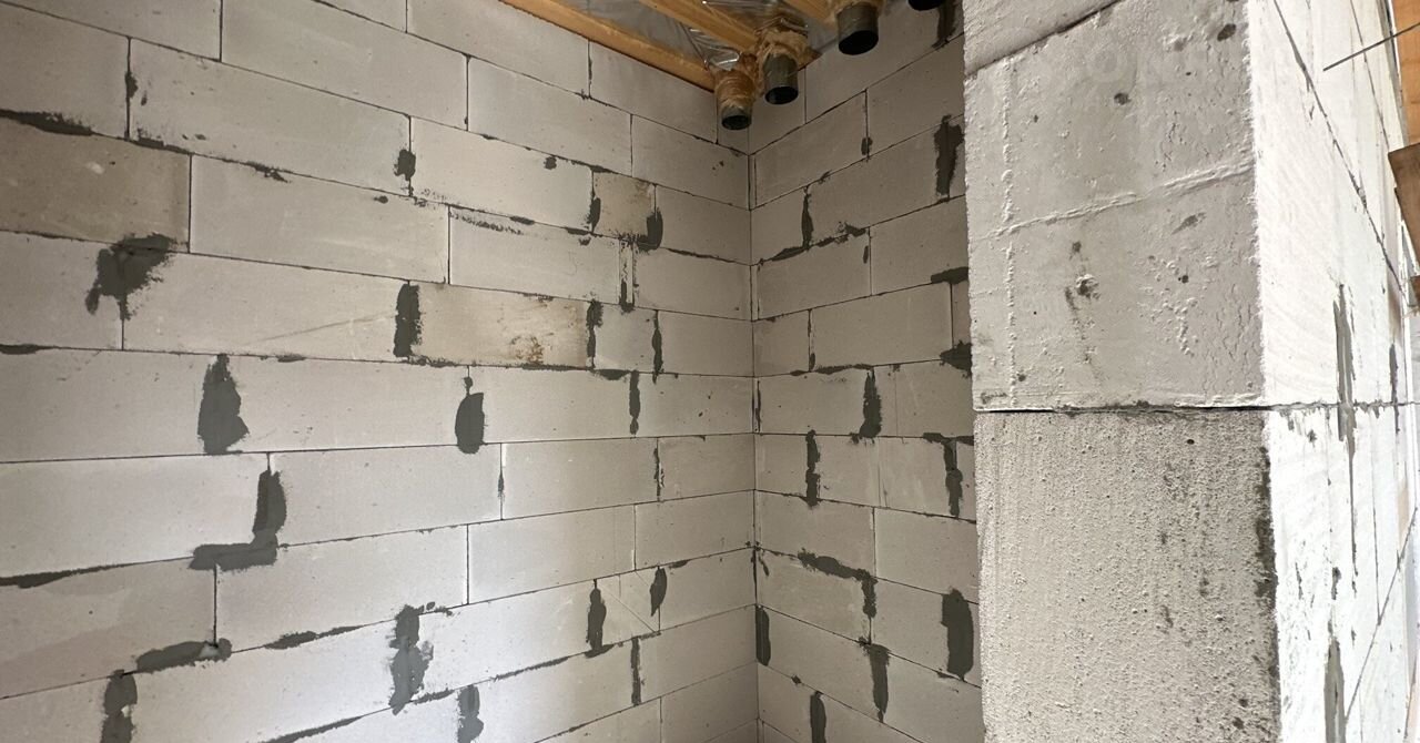 * Стены: газобетонные блоки