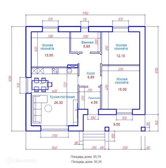 Общая площадь 90 м2