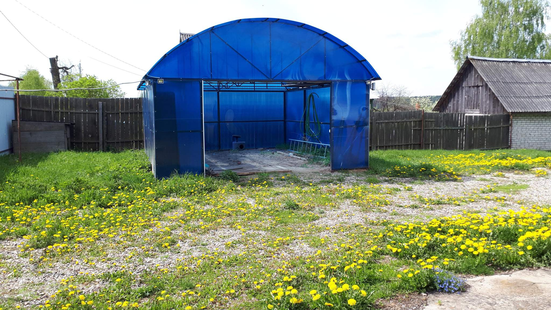 На участке имеется летний гостевой домик (16кв.м) с верандой (8кв.м). и гараж ангарного типа из поликарбоната. В домике водонагреватель, душ, умывальник и туалет,