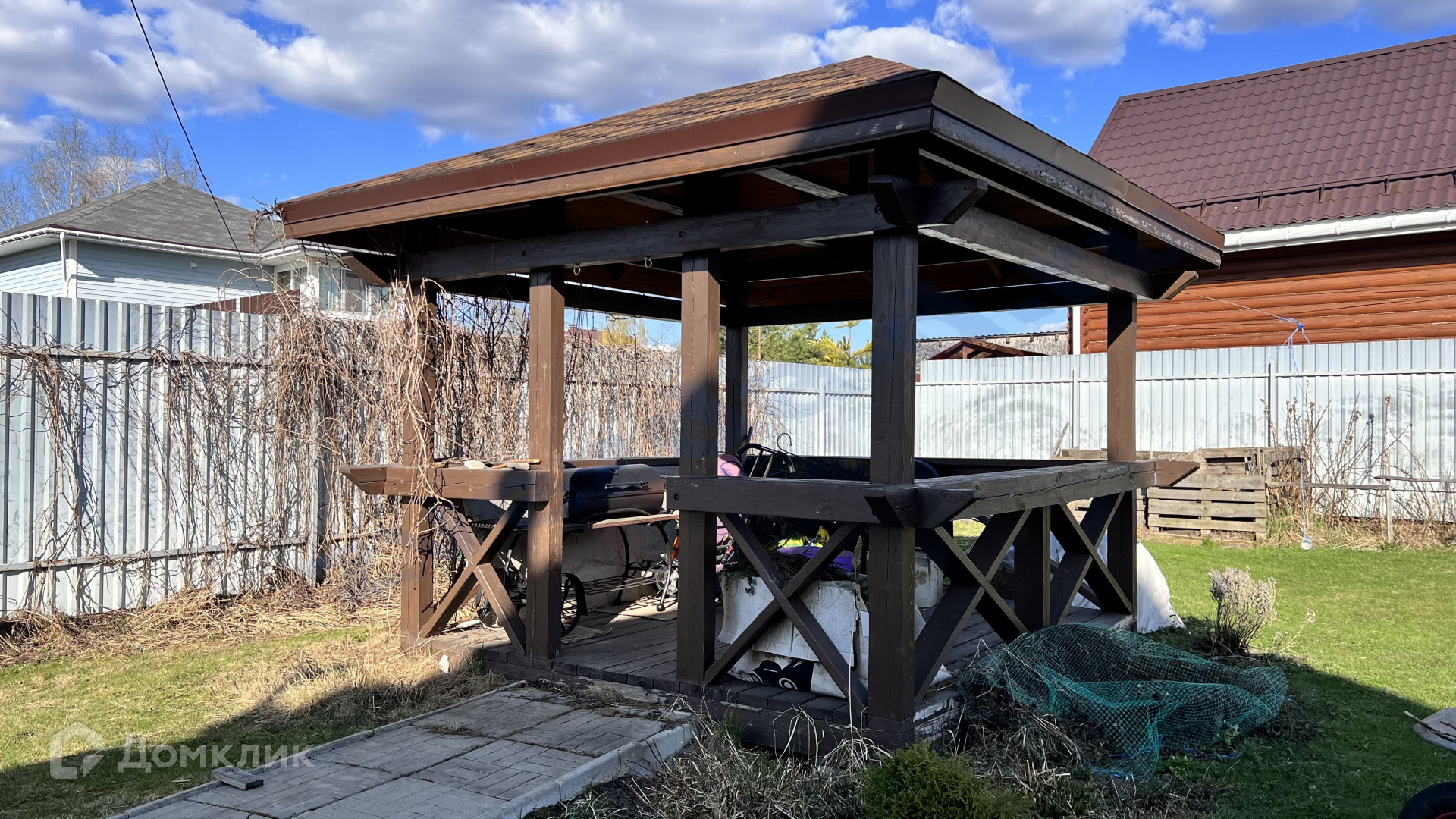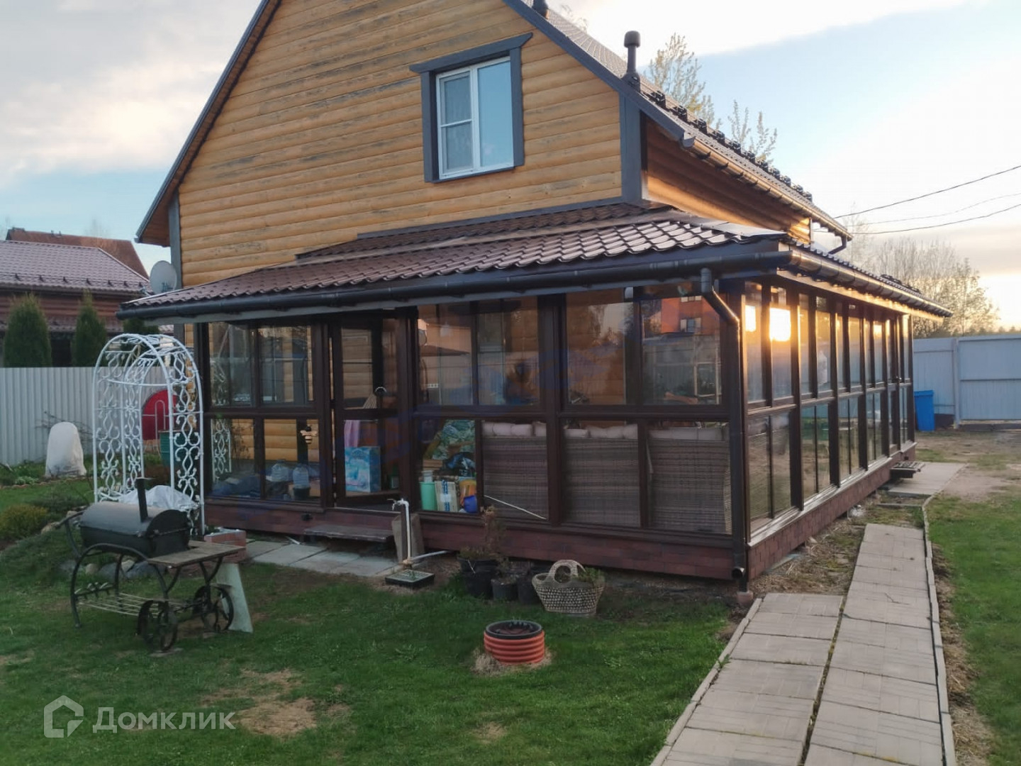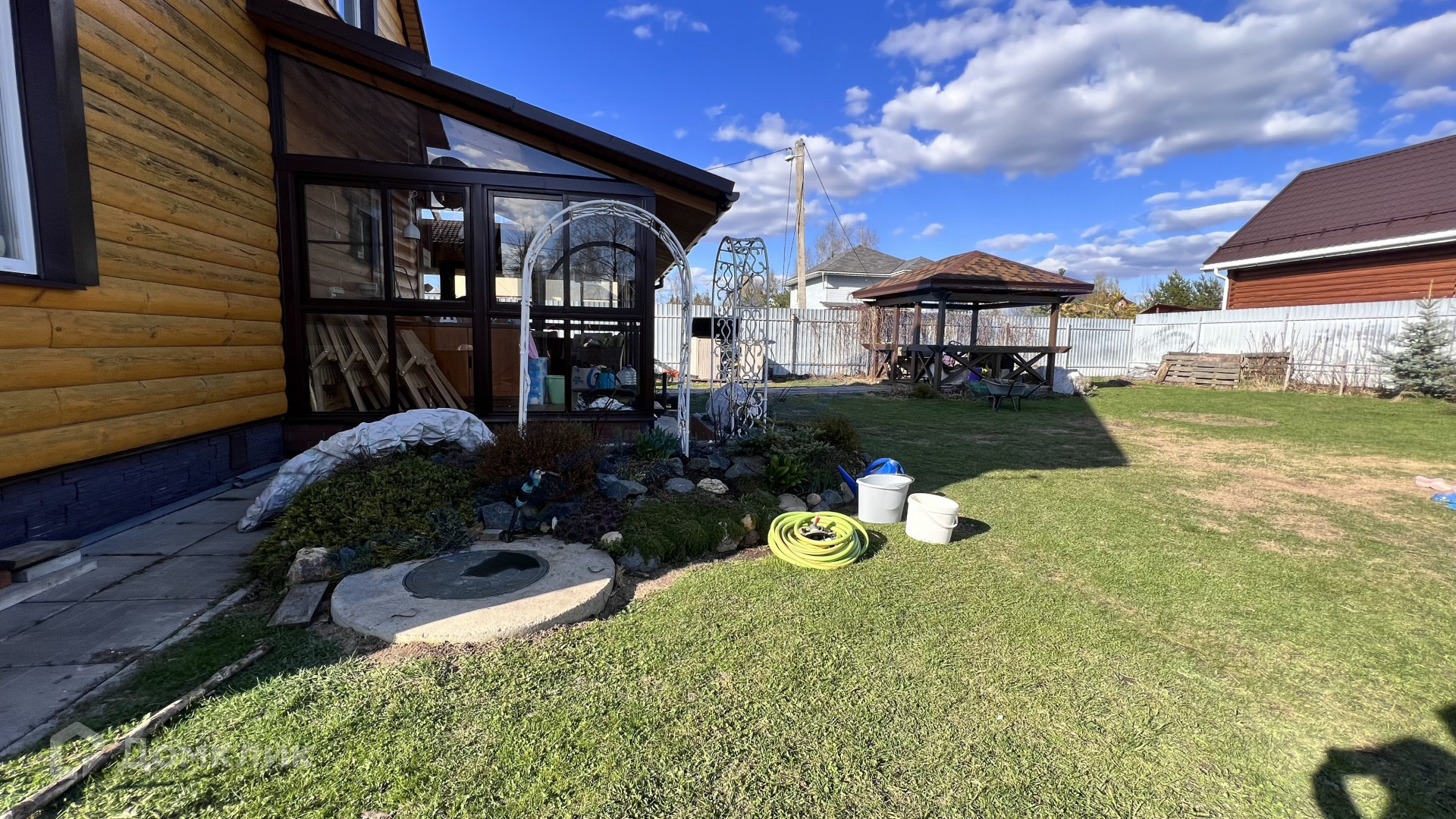 Дом площадью 110 м2 (теплое помещение) с крытой террасой, расположен на участке 750 м2, правильной формы. На участке беседка, парковка, декоративные насаждения, плодовые кусты.