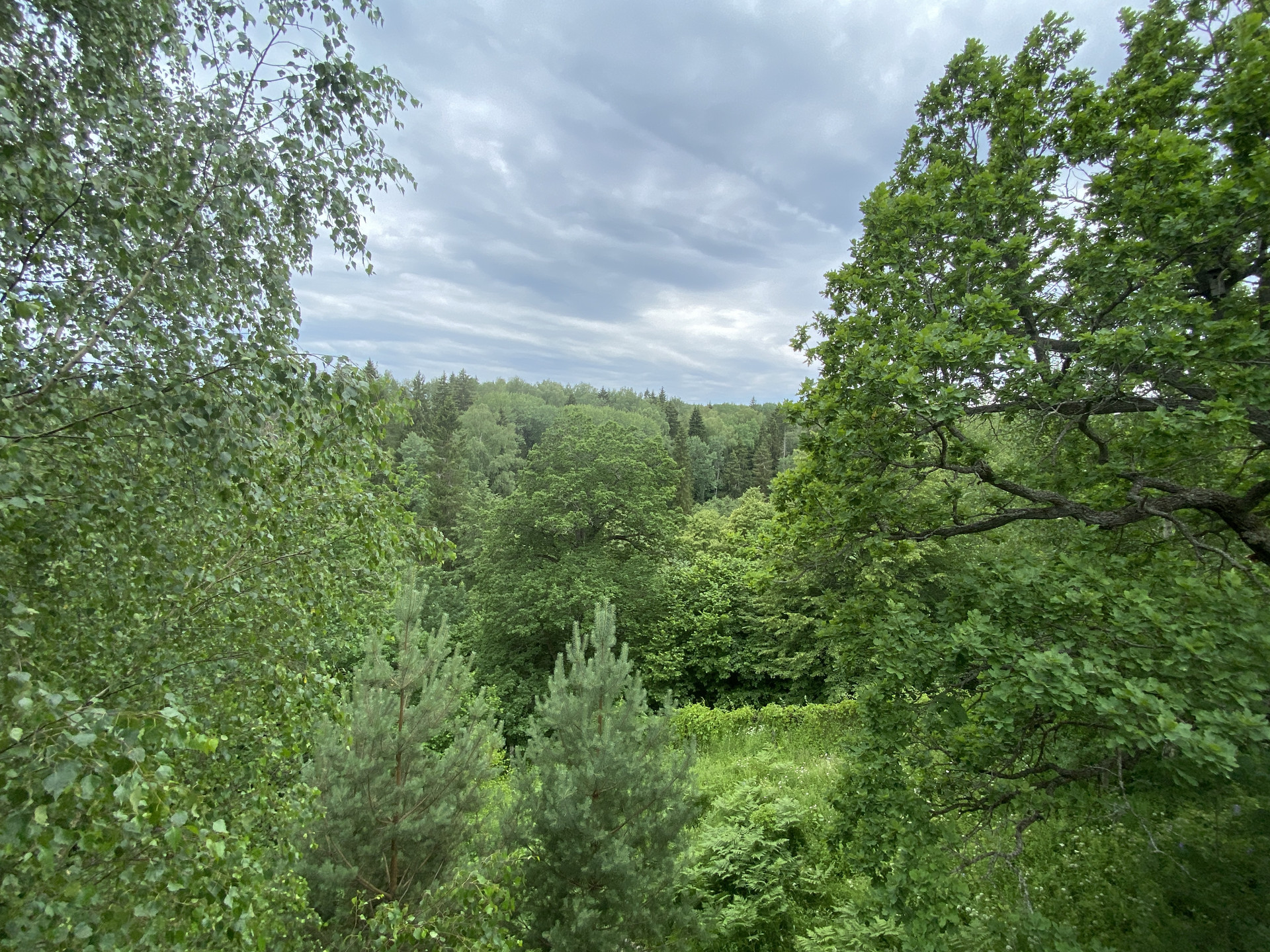 В связи с его расположением в непосредственной близости с высоким и крутым обрывом высотой более 30 метров, со 2-х этажей построенных строений будет открываться завораживающий вид на бескрайнюю лесную долину. У подножия холма протекает ручей, к которому можно спуститься по лестнице, выложенной из природного камня.