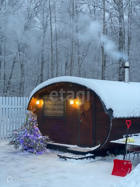 Отдельно стоящая новая баня -бочка, беседка.