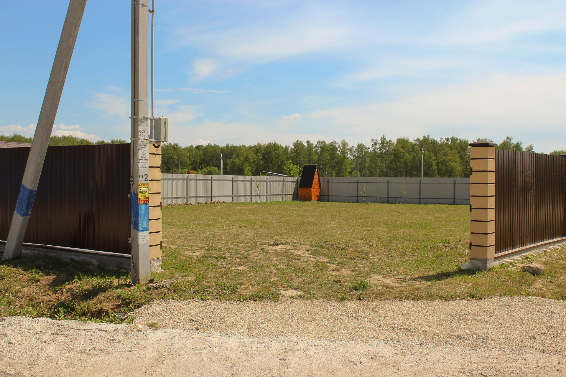 Недалеко магазины, школа и детский сад, больница. Участок ровный, без построек и забора - делаете по своему вкусу.