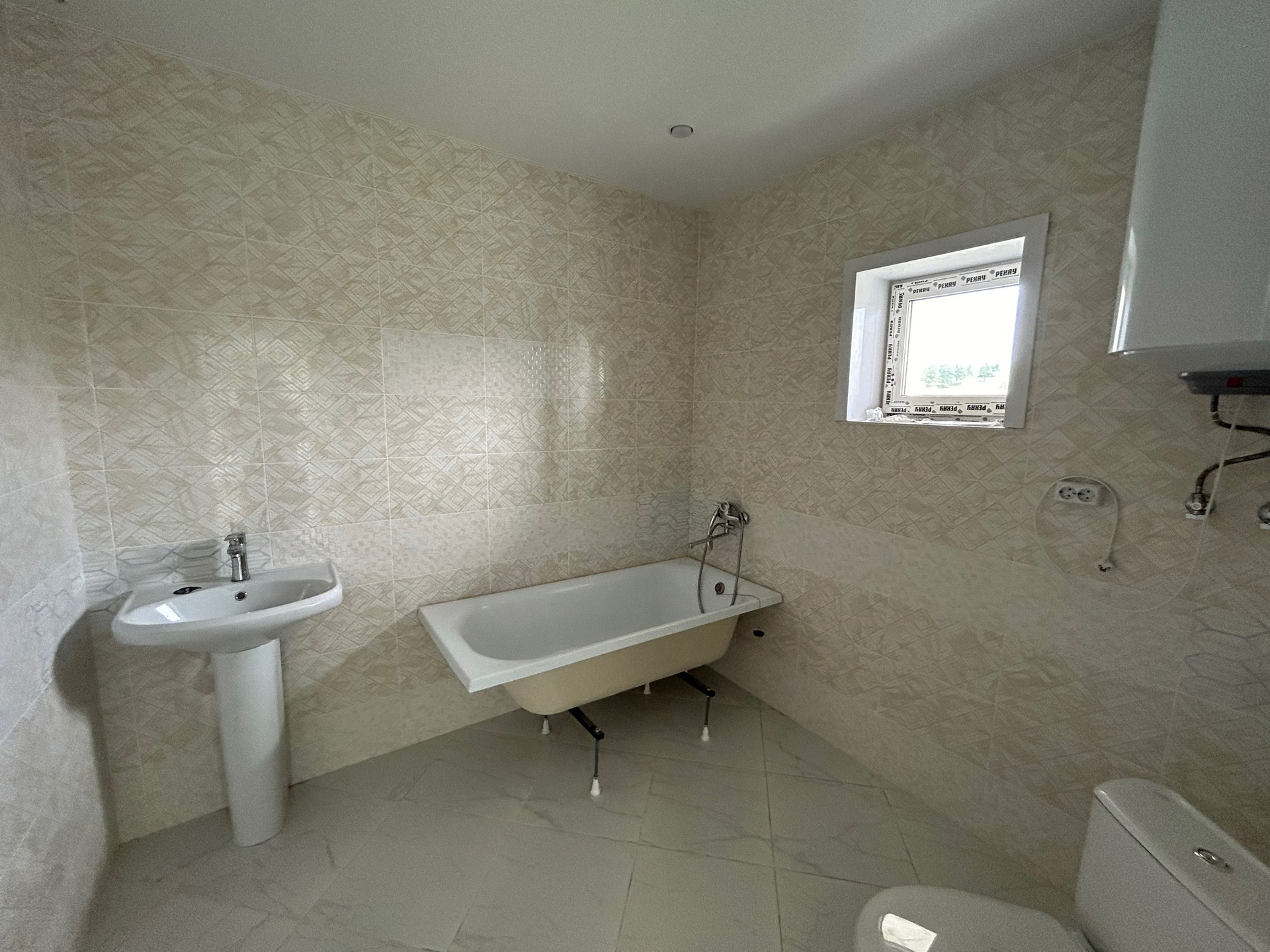 Септик 5м3 Автономная скважина. Водонагреватель. Вода горячая и холодная в доме. Электричество, вся электропроводка установлена( выключатели, розетки) ОТОПЛЕНИЕ - теплые водяные полы. Потолок натяжной с точечным освещением. В комнатах на полу линолеум, в гостиной и в санузле керамогранитная плитка. Дом полностью готов к проживанию.