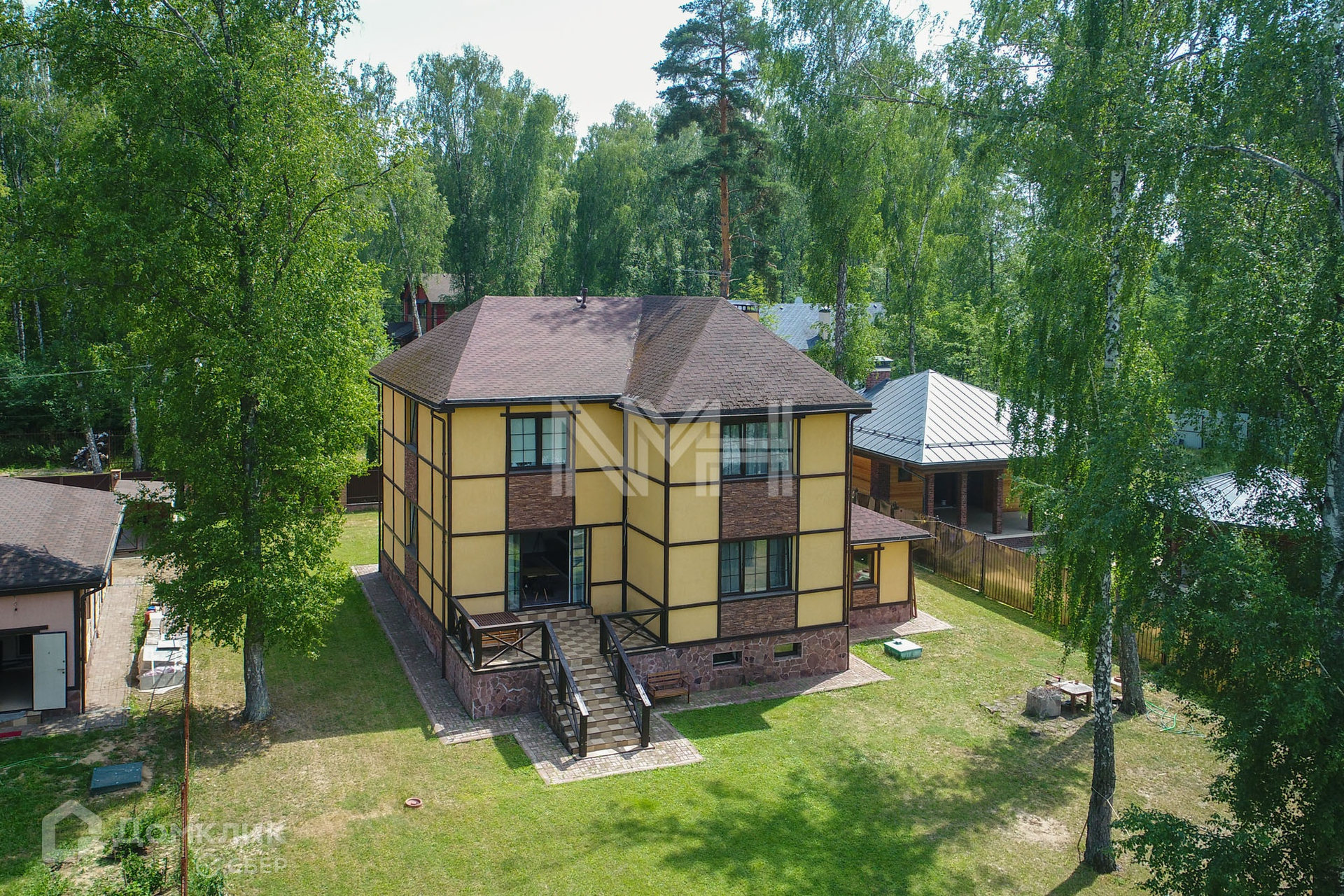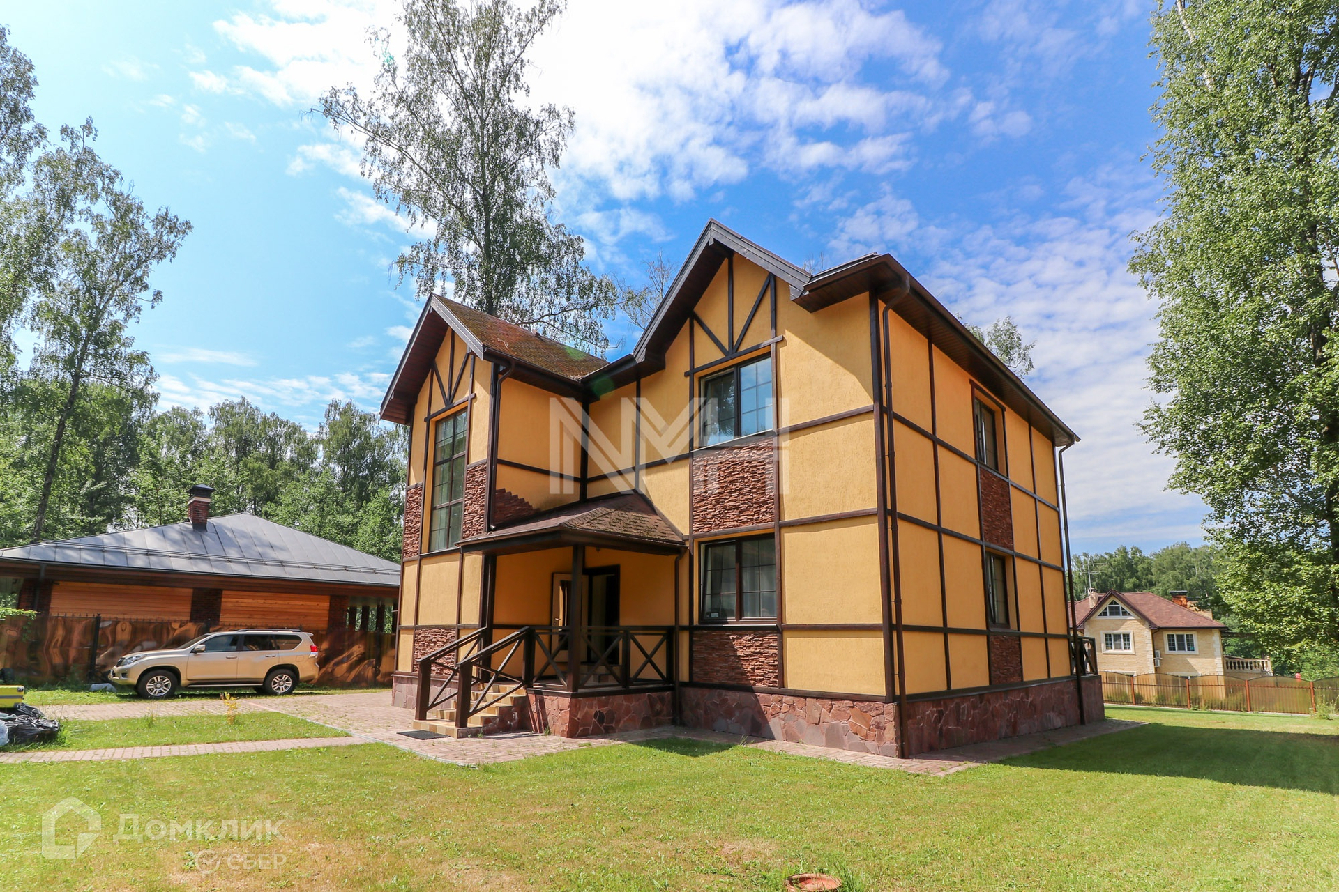 Ключевые особенности: участок с березами, цокольный этаж, сауна, спортзал, просторные с/у, гараж.