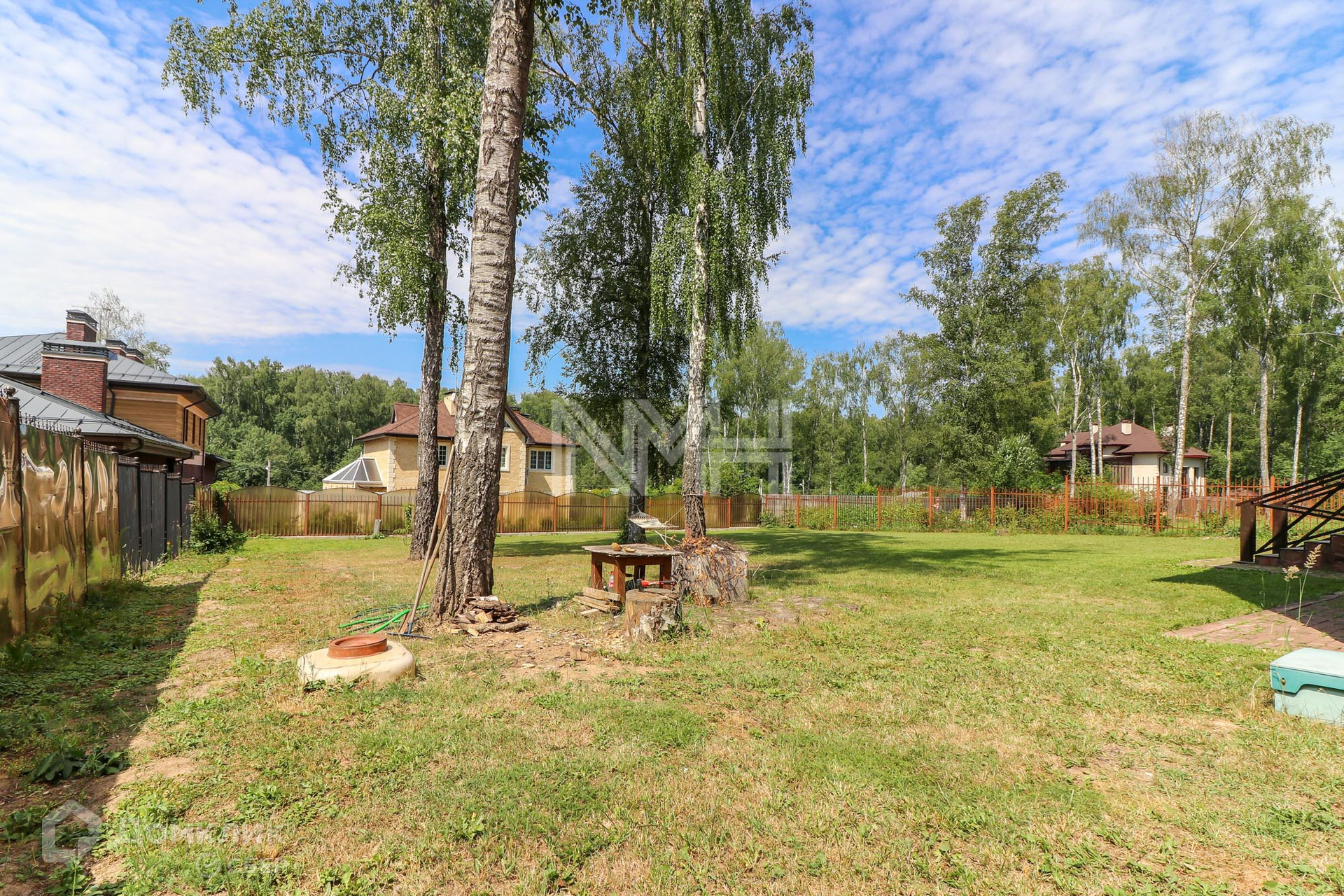 Участок видовой, 15 соток, с ландшафтным дизайном и освещением, правильной формы. На участке взрослые красивые берёзы. Выполнен дренаж, заезд, парковка на 3 а/м.