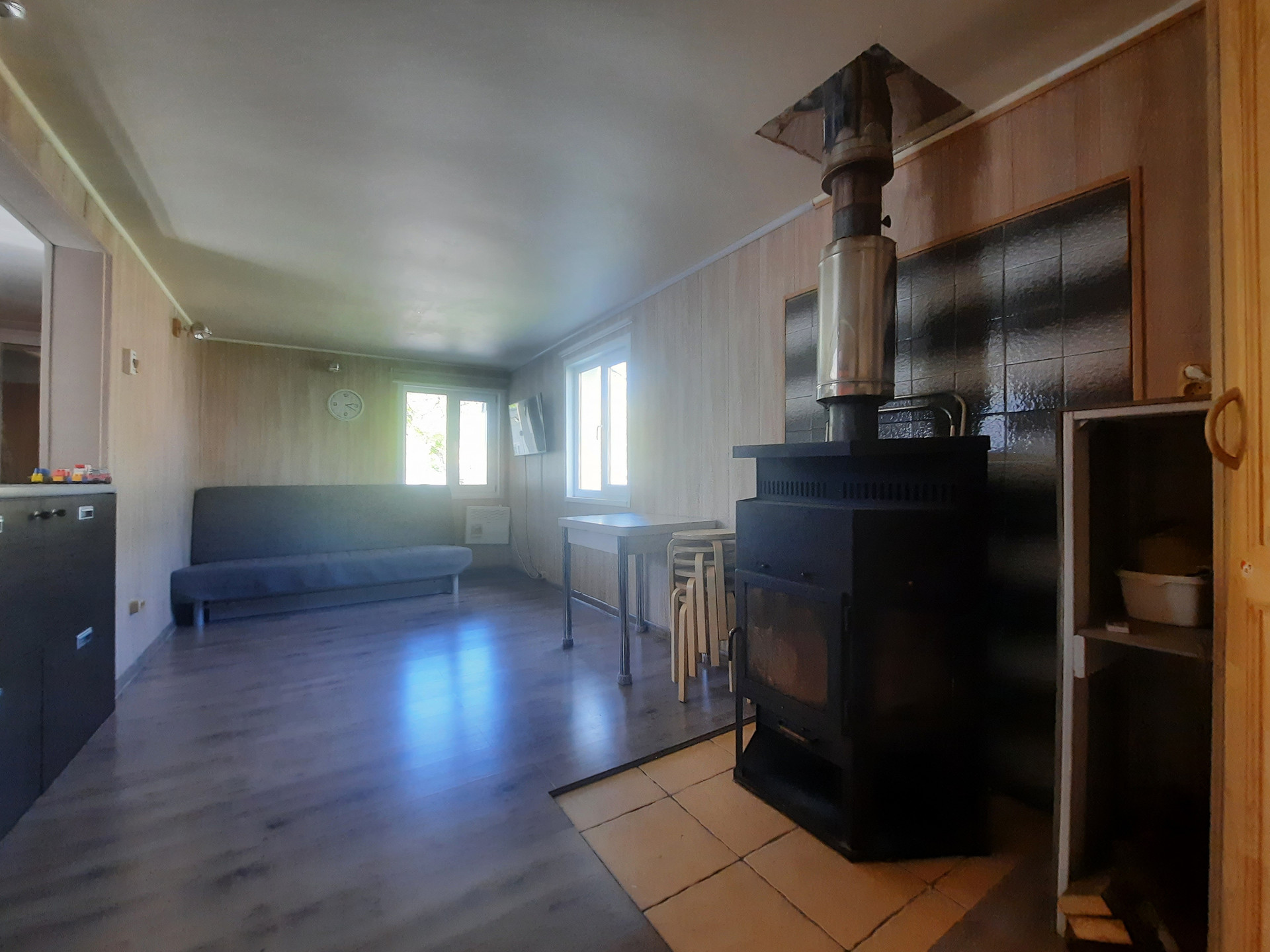 Отопление - электрический теплый пол и конвекторы, печь-камин длительного горения.