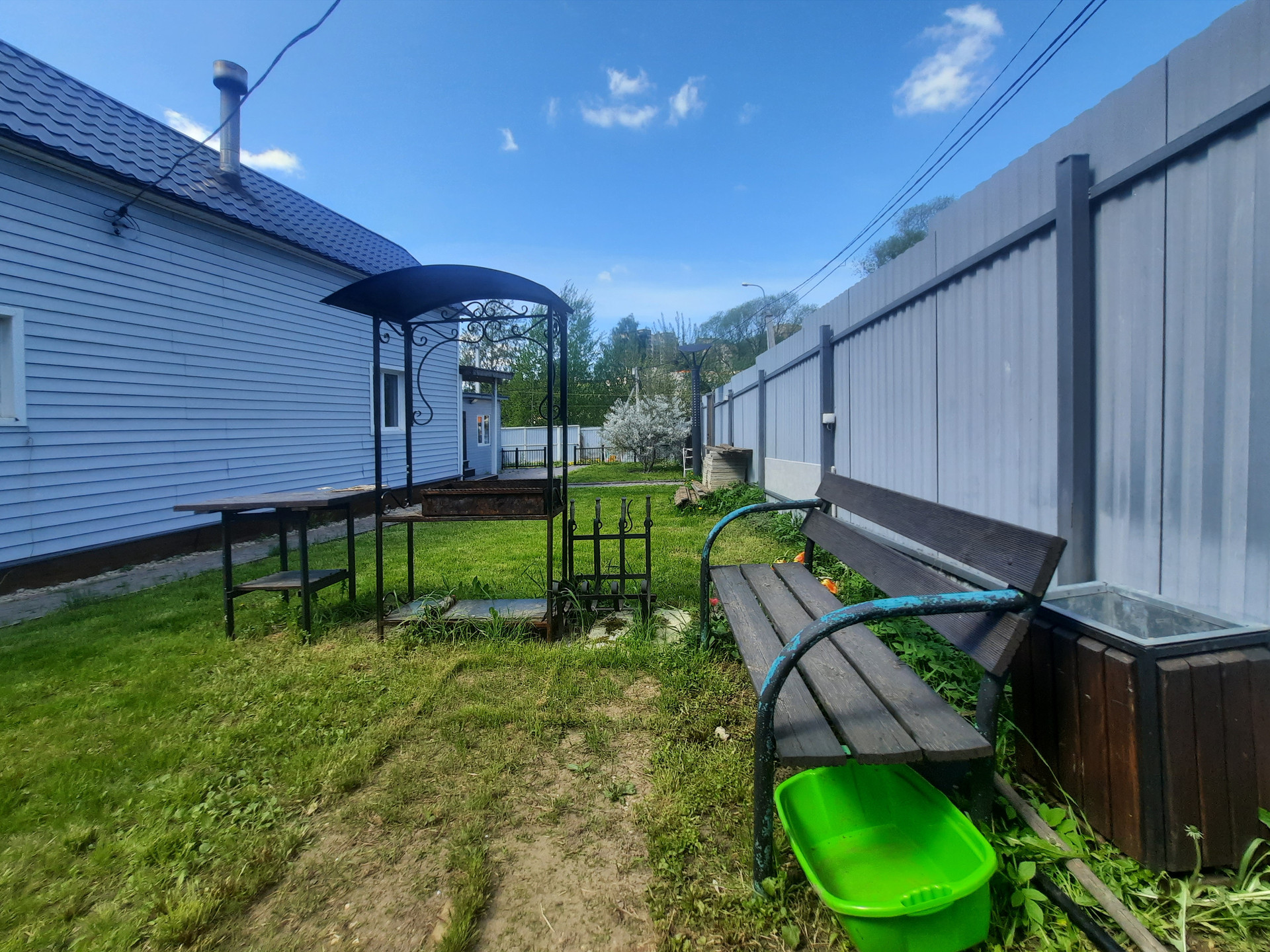 - газон, барбекю.