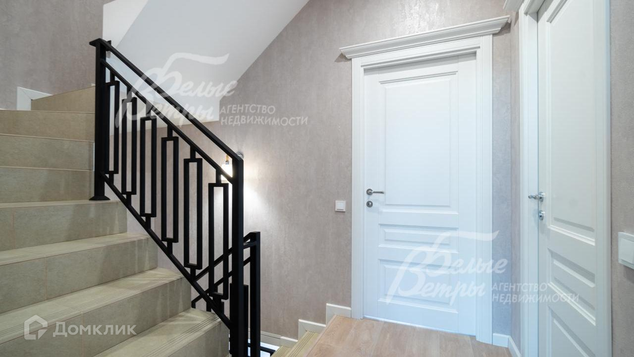 Внутренняя отделка: на стенах поклеены обои флизелиновые, зарубежные. Разведен водяной теплый пол, отделка пола - качественный ламинат на 1 этаже, в санузлах - керамогранит Kerama marazzi. Лестница на монолитном основании шириной 1 метр, ступени отделаны керамогранитом Kerama marazzi, ограждение - ковка. Натяжные потолки. Установлена сантехника: ванная Reimar, раковина Sanita Luxe, инсталляции Grohe. Установлены радиаторы Kermi. Деревянные межкомнатные двери, производитель ALBERO..