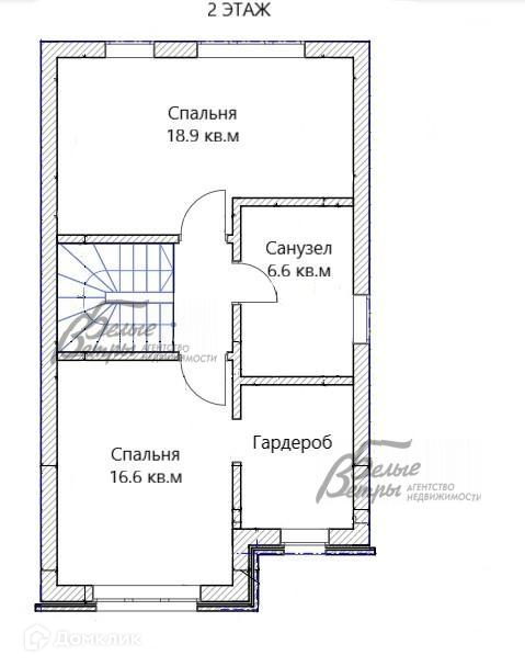2-ой этаж: спальня 18,9 кв м с гардеробной, спальня 16,6 кв.м, санузел 6.6 кв м..