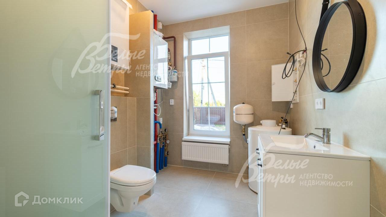 Инженерное обеспечение: установлен газовый котел Ferroli на 24 кВт, резервный электрический котел, бойлер, который подогревается от газового котла, и фильтр грубой очистки воды. Разведено фасадное освещение (крыльцо и выход во двор)..