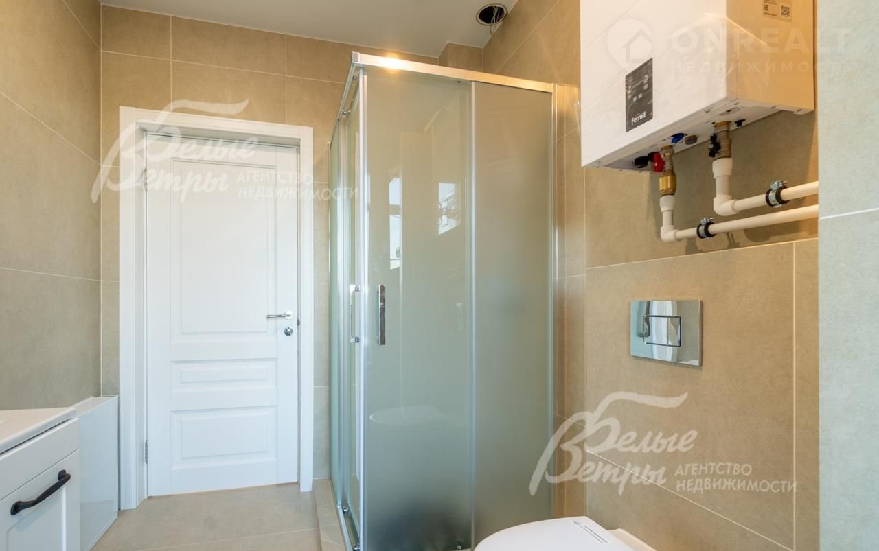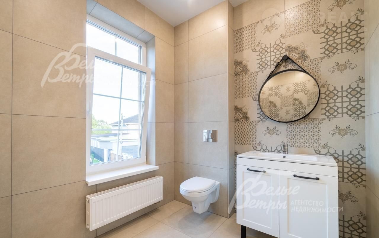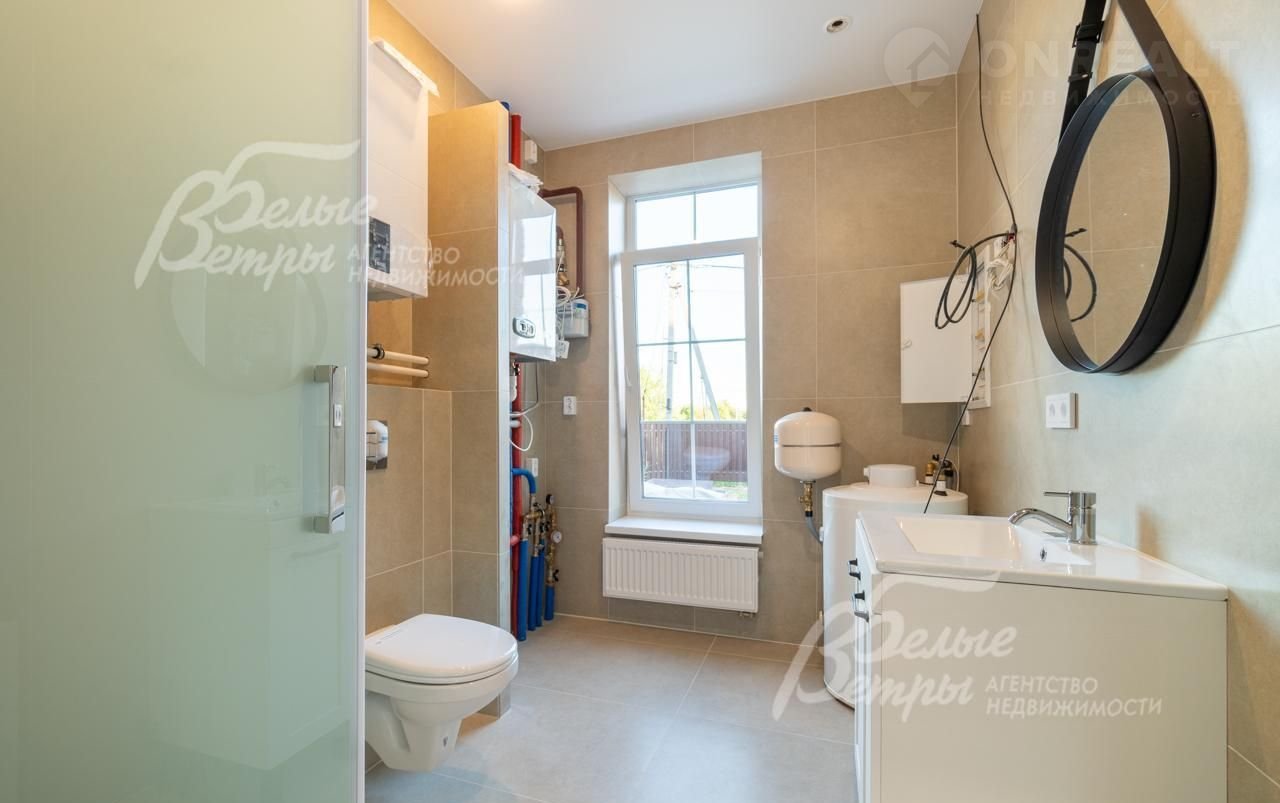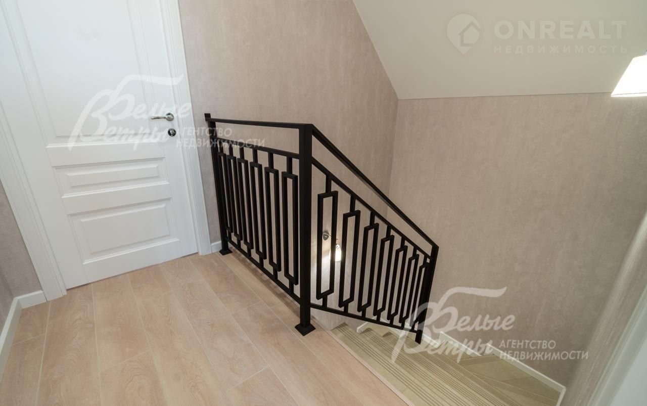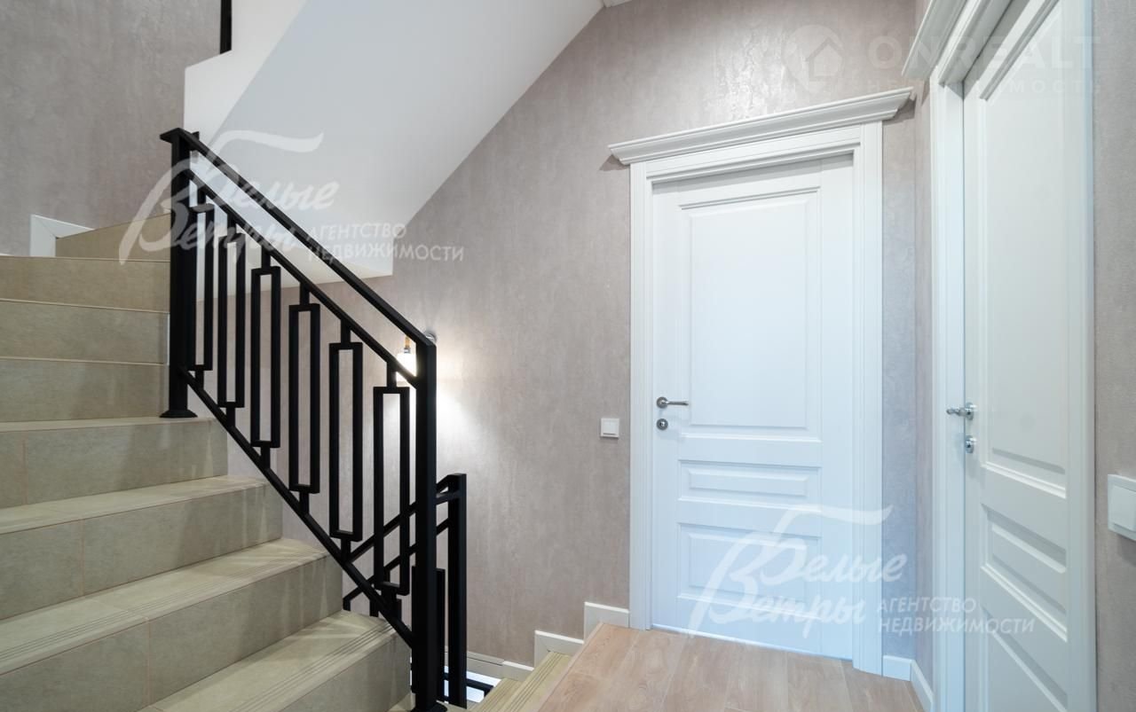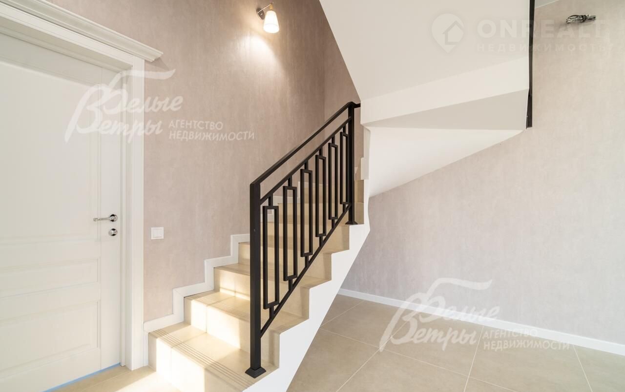 Внутренняя отделка: на стенах поклеены обои флизелиновые, зарубежные. Разведен водяной теплый пол, отделка пола - качественный ламинат на 1 этаже, в санузлах - керамогранит Кеrаmа mаrаzzi. Лестница на монолитном основании шириной 1 метр, ступени отделаны керамогранитом Кеrаmа mаrаzzi, ограждение - ковка. Натяжные потолки. Установлена сантехника: ванная Rеimаr, раковина Sаnitа Luхе, инсталляции Grоhе. Установлены радиаторы Кеrmi. Деревянные межкомнатные двери, производитель АLВЕRО..
