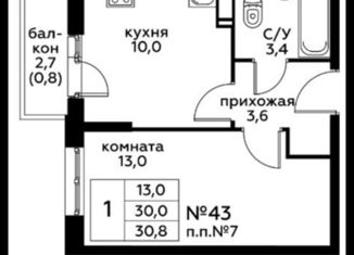 Продам 1-комнатную квартиру, 30.7 м2, проспект Куприна, 30к9