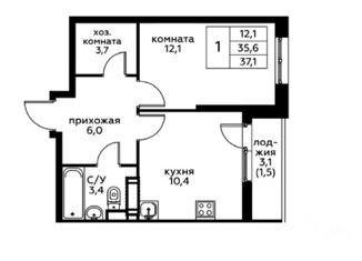 Общая площадь: 37.1 м2