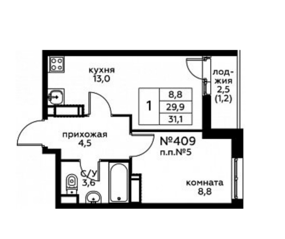 Количество комнат 1