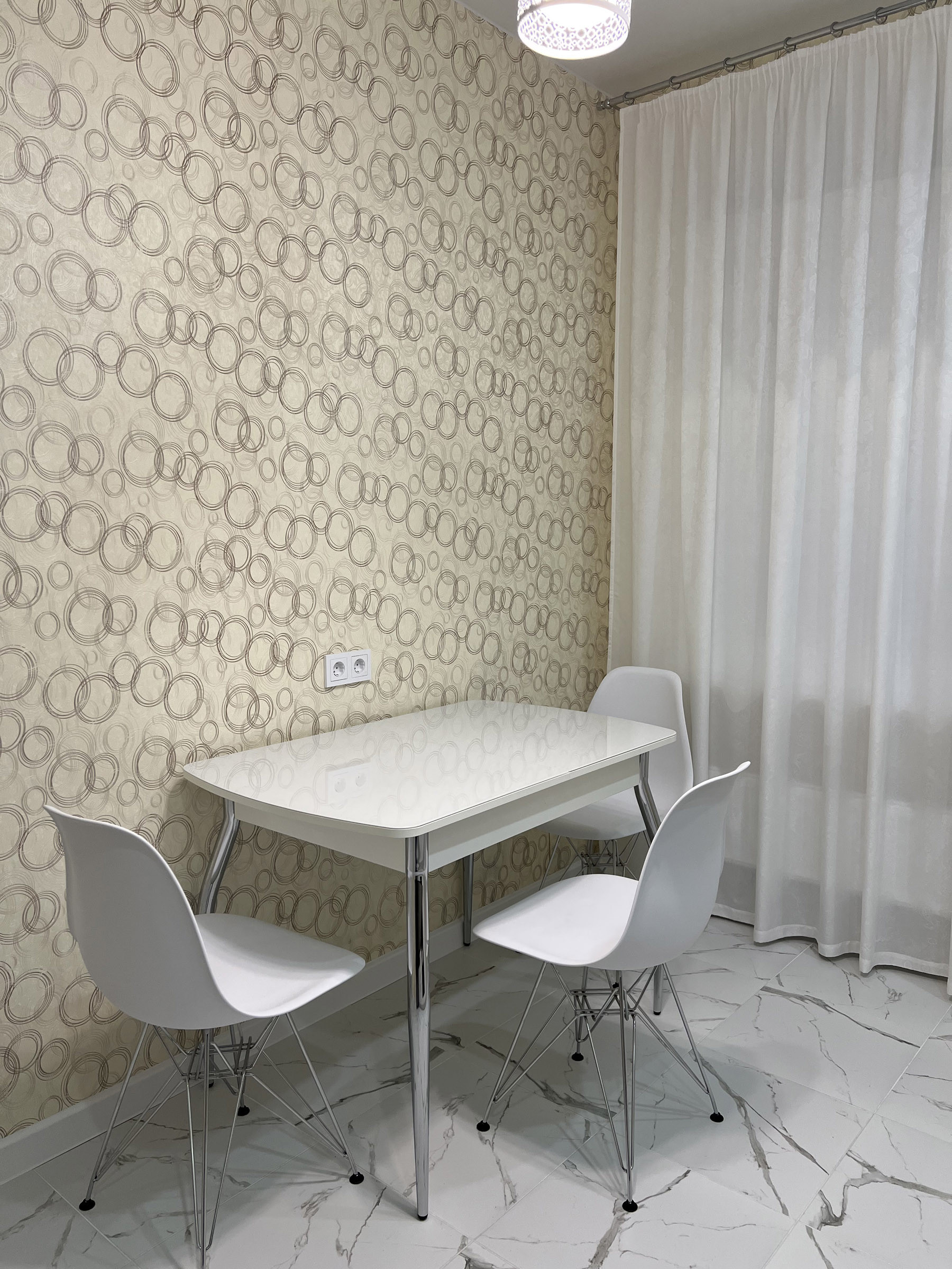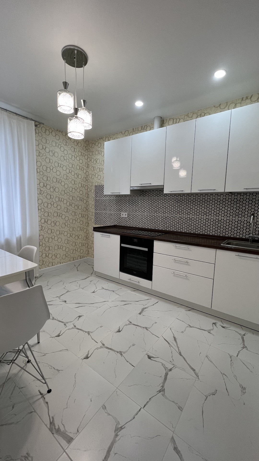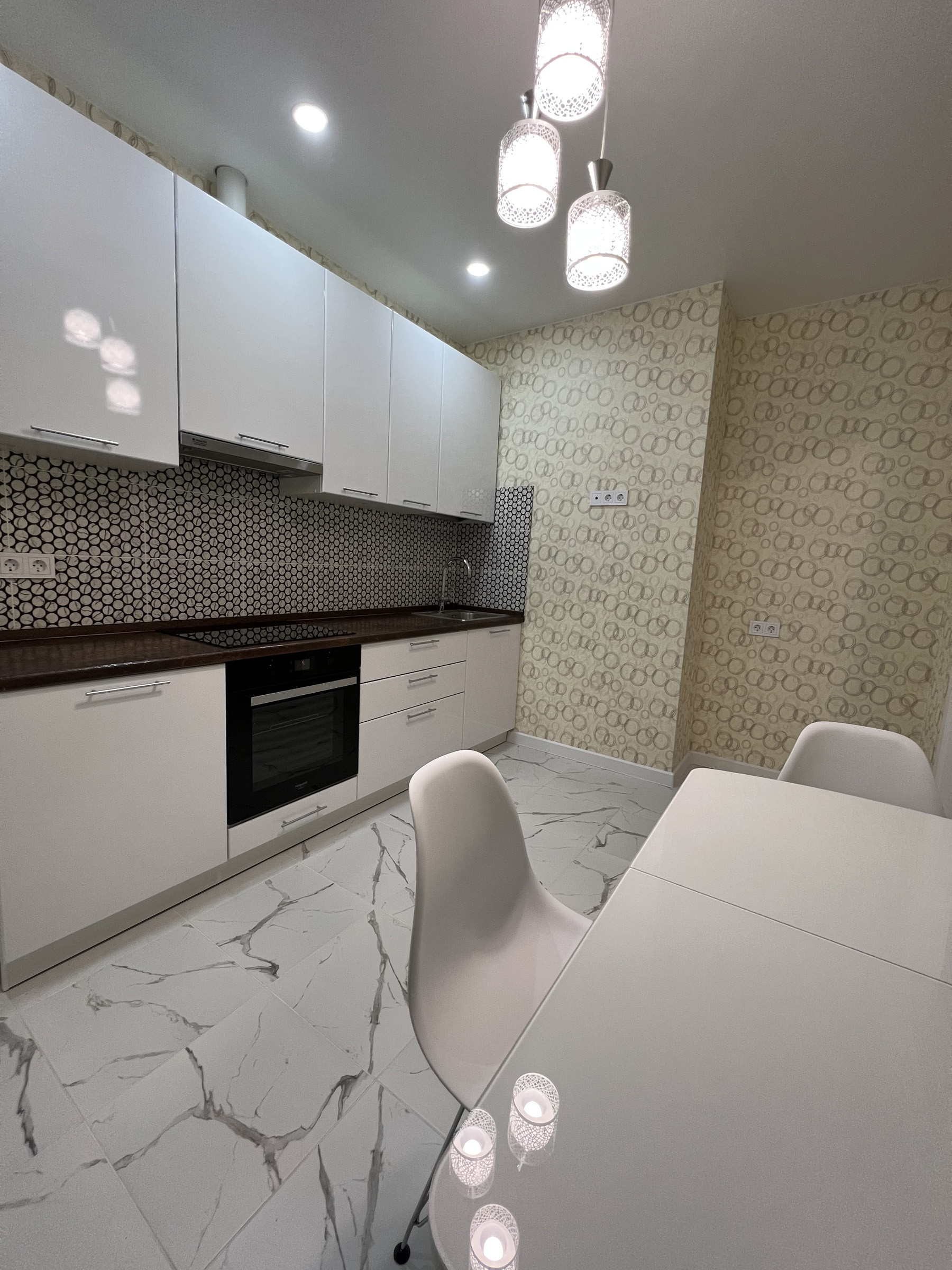 Современная квартира с самой рациональной планировкой из предлагаемых застройщиком (см. фото): большая комната, комфортная кухня, просторный санузел и холл. Общая площадь указана без учёта лоджии (т.е. ещё +2,2 кв.м.). В квартире выполнен хороший ремонт, грамотно смонтирована разводка электрики, сантехники и отопления, по всей площади сделан натяжной потолок без швов, стены - флизелиновые обои, пол - керамогранит и ламинат, на кухне встроена система "тёплый пол". Кухонный гарнитур изготовлен по индивидуальному заказу, установлена встроенная техника Hotpoint-Ariston, дорогие смесители для воды. После ремонта в квартире никто не жил, всё абсолютно новое.