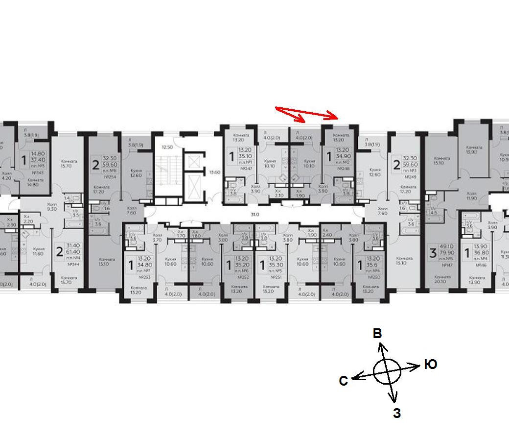 Общая площадь 34.9 м2
