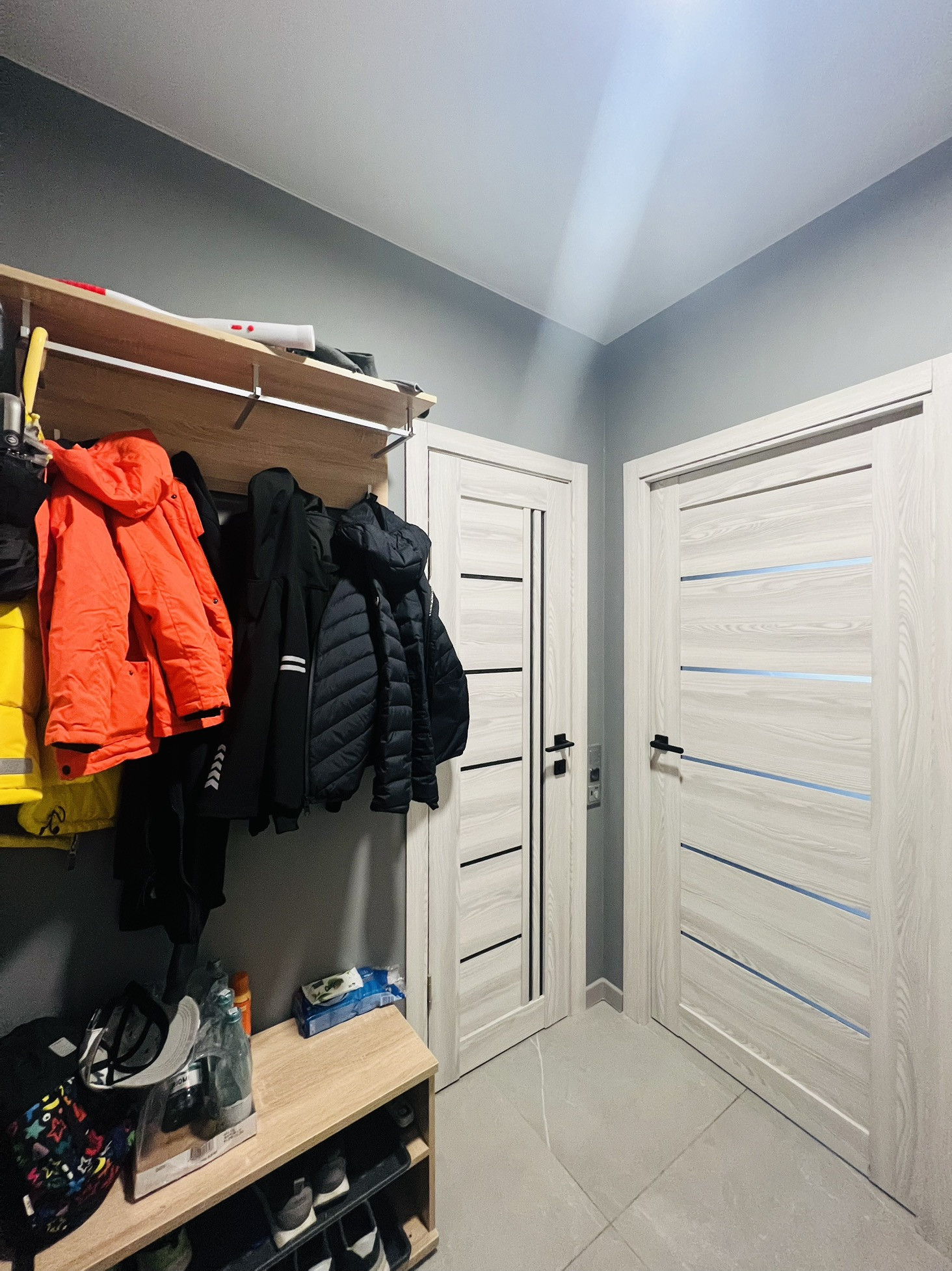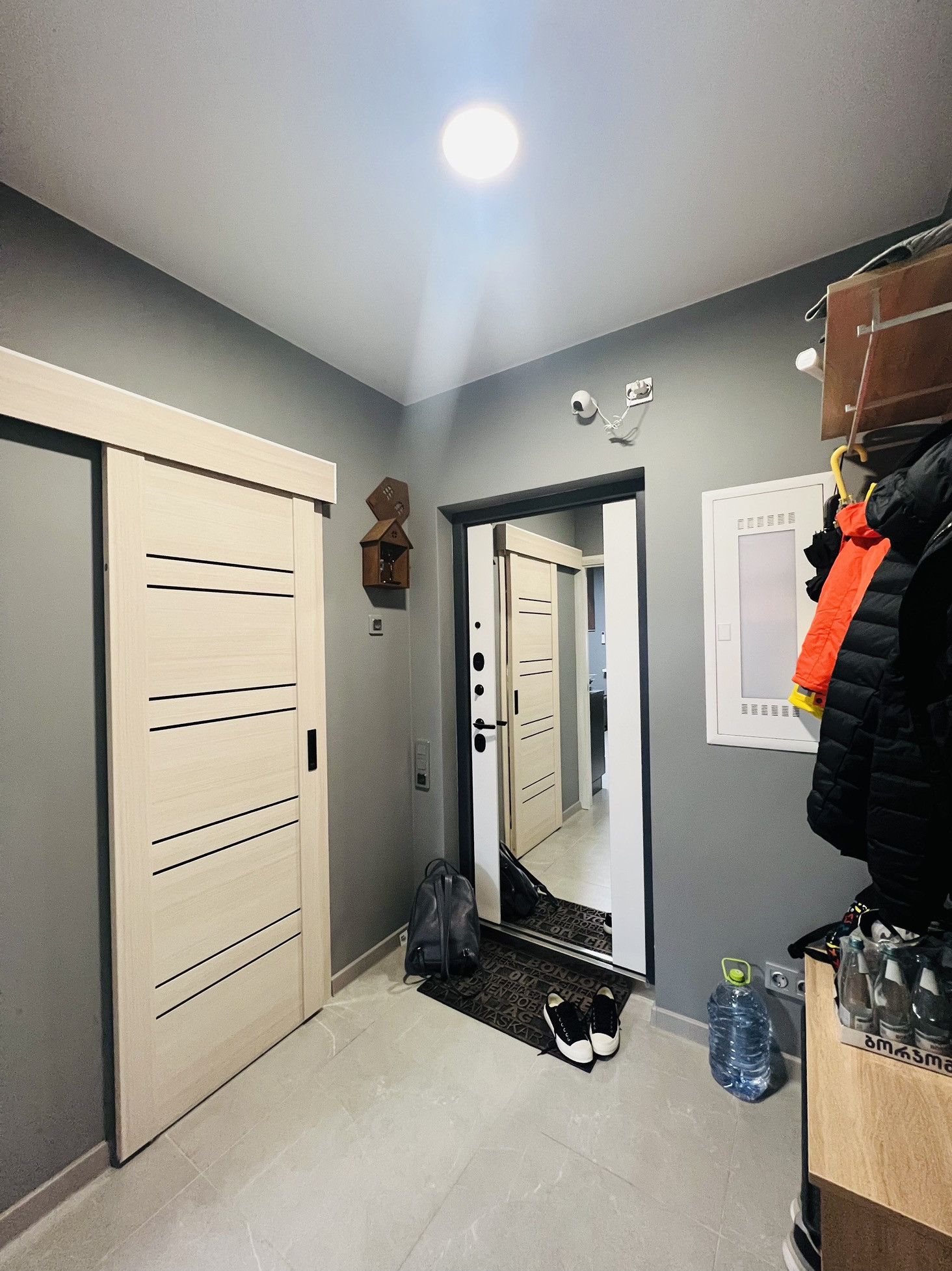Просторный СУ, гардеробная комната и компактная прихожая.