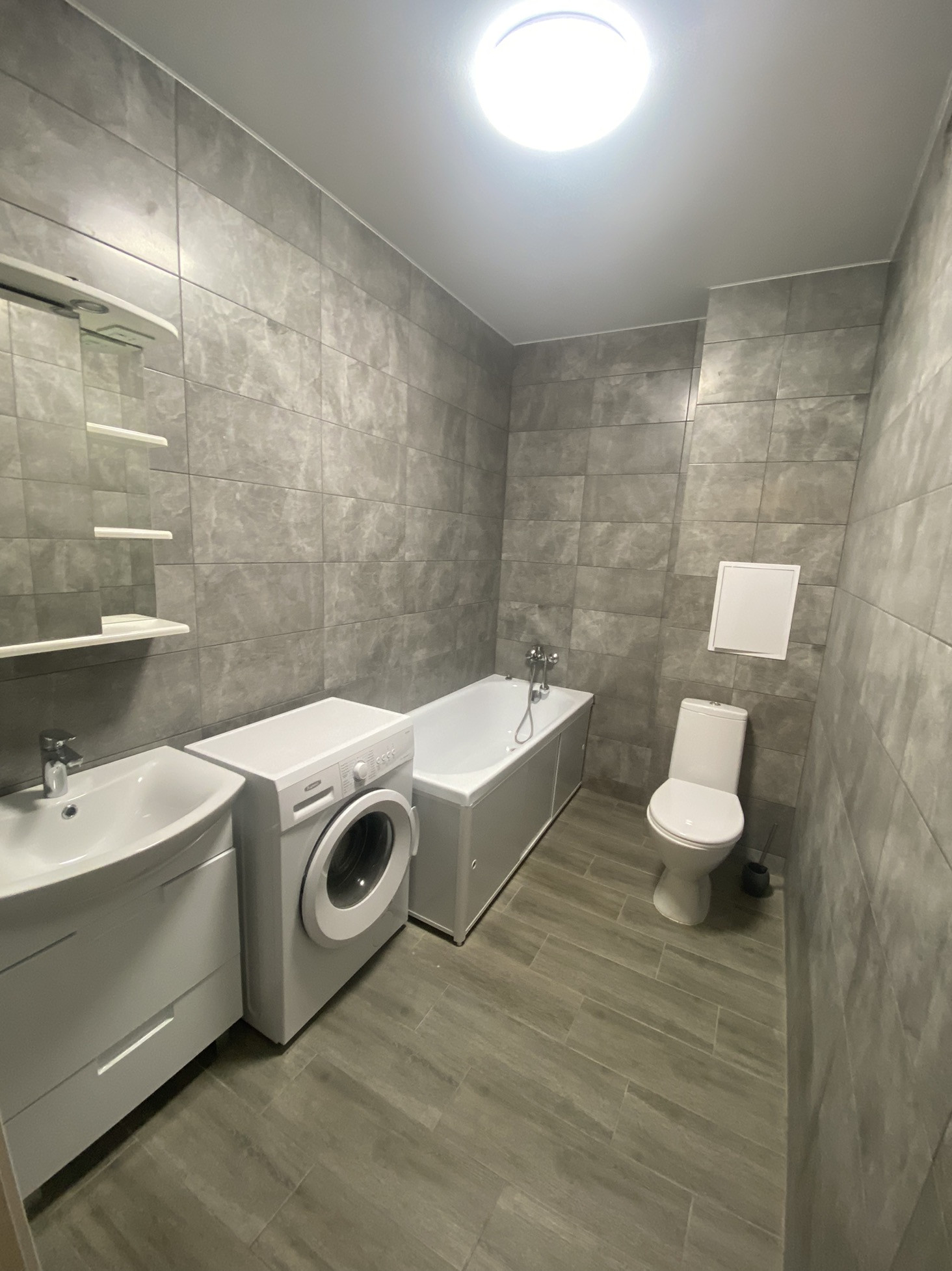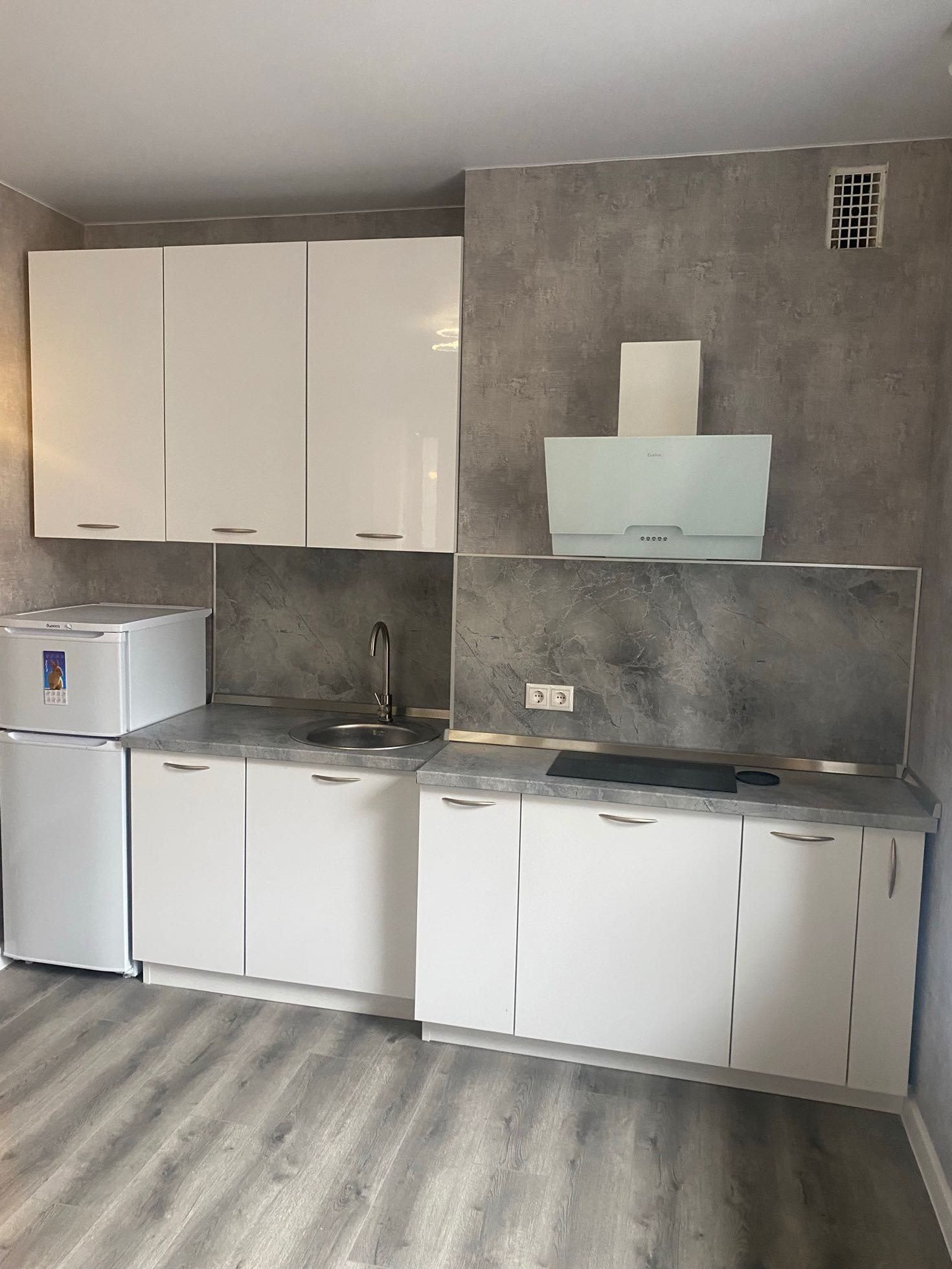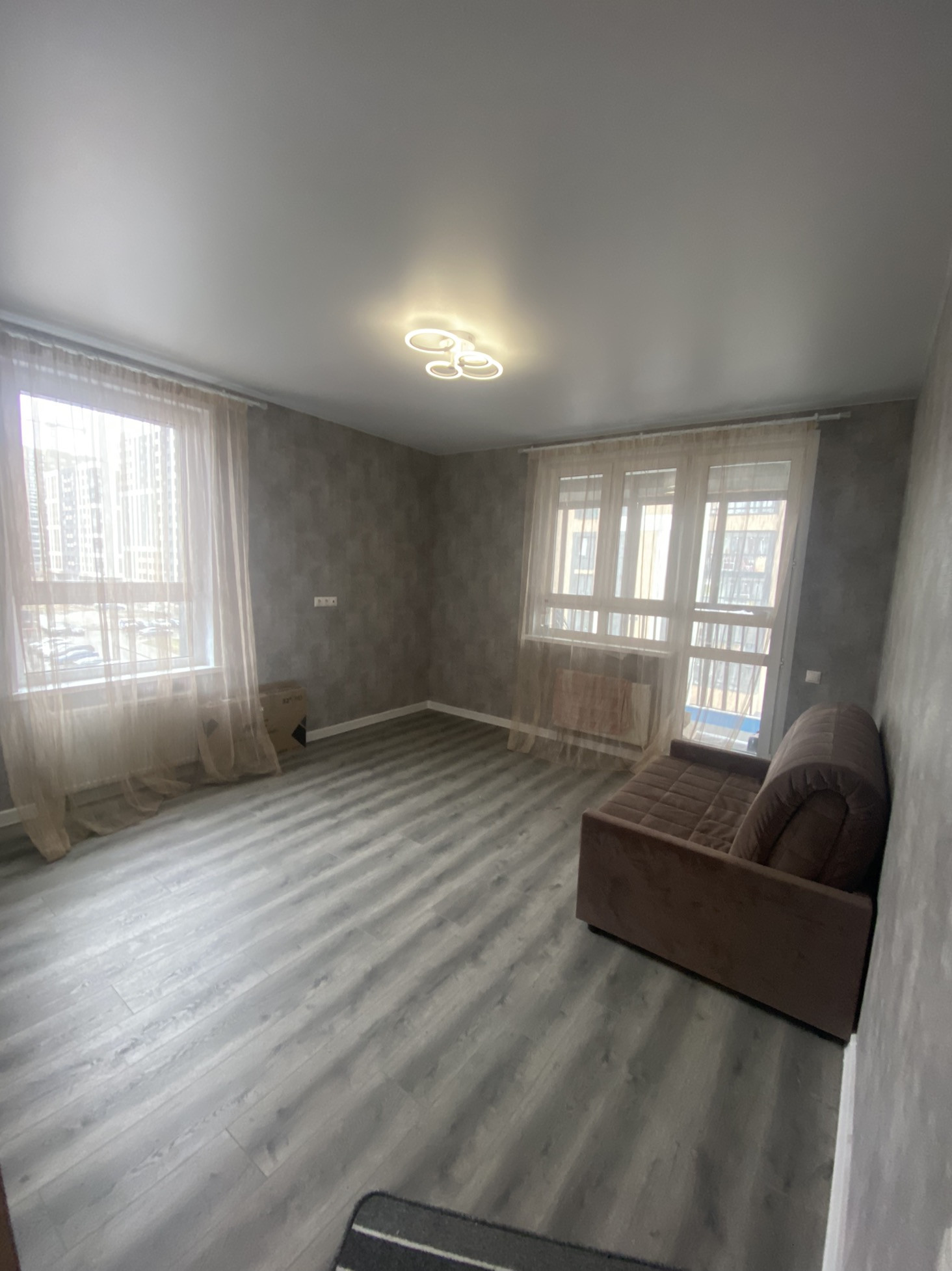 В квартире остается кухонный гарнитур, техника, диван.