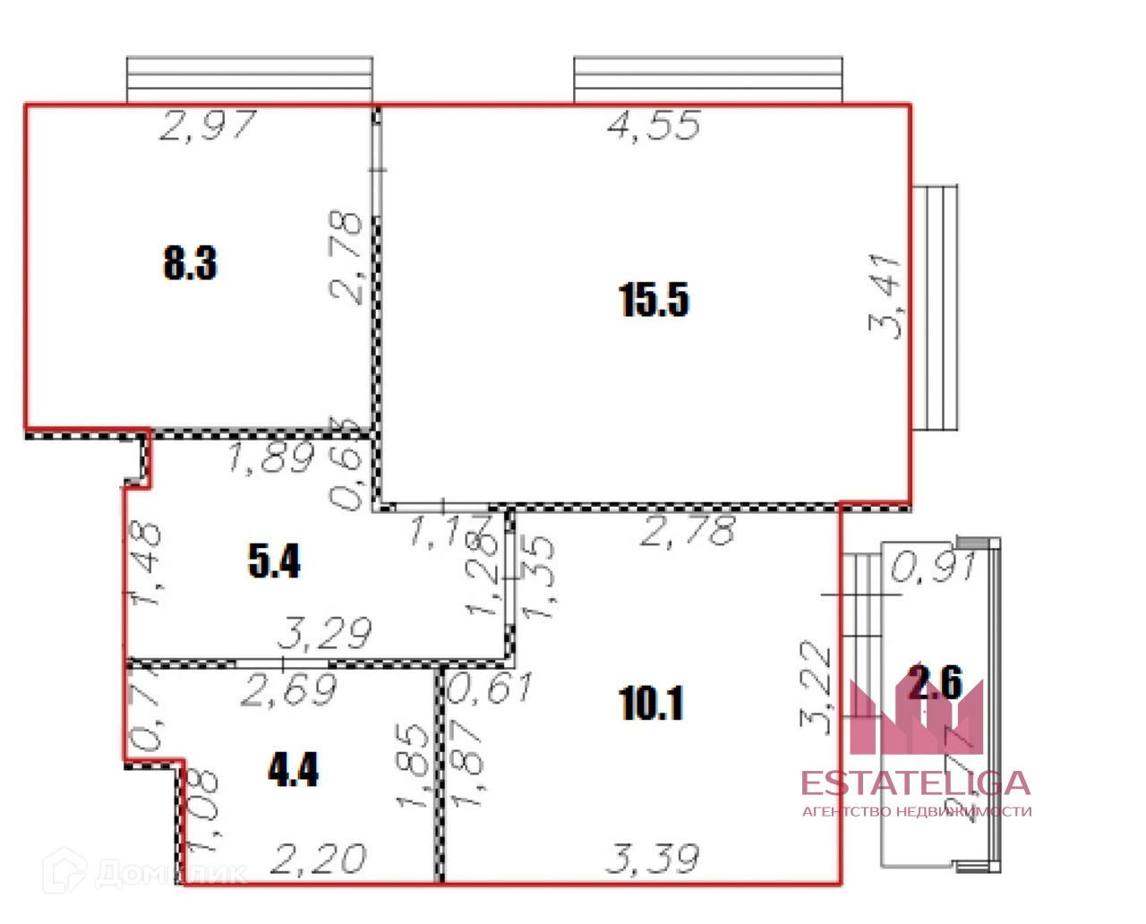 Общая площадь 46.3 м2