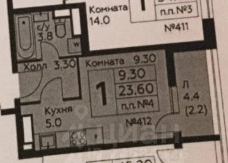 Общая площадь 23.6 м2