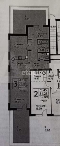 4 oгpомныx окнa и два стеклянных портала с пол. Площадь квартиры 78 метров не учитывает две терасы: