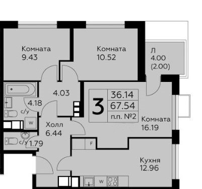 Общая площадь 67.1 м2