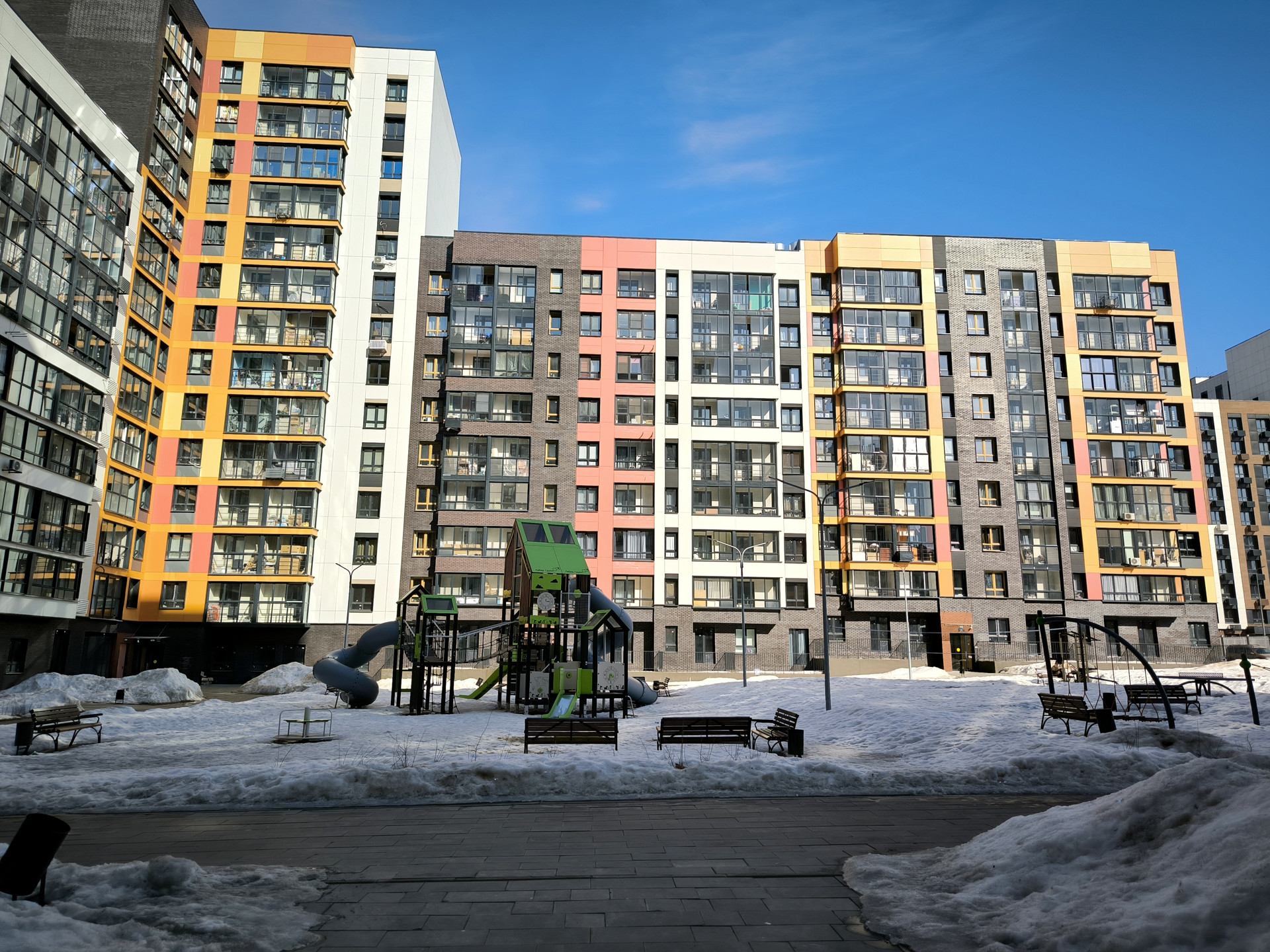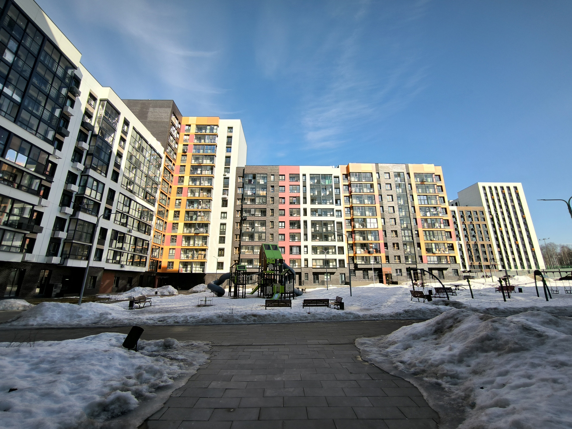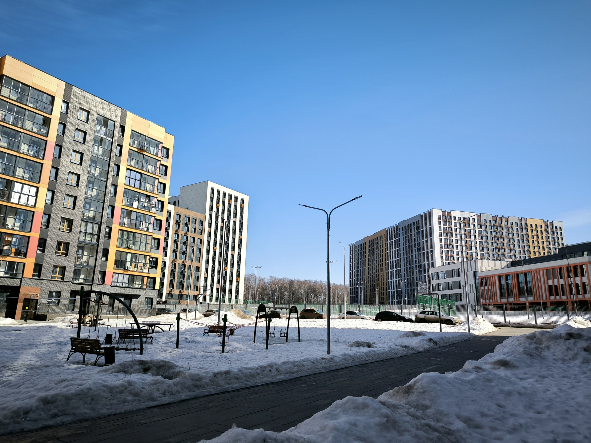 Малоэтажные дома 12-14 этажей. Закрытый внутренний двор с детскими и спортивными площадками. Много парковочных мест. Рядом достраивается образовательный комплекс - школа и детский сад. Вся инфраструктура в доме и соседних корпусах - магазины, пункты выдачи, аптеки, пекарни, кафе.  В пешей доступности прогулочные зоны.