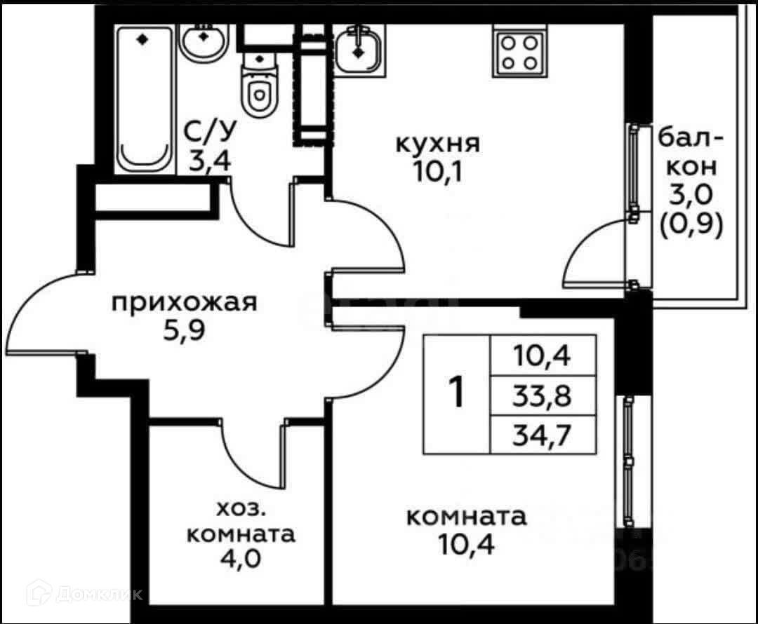 Общая площадь 33.6 м2