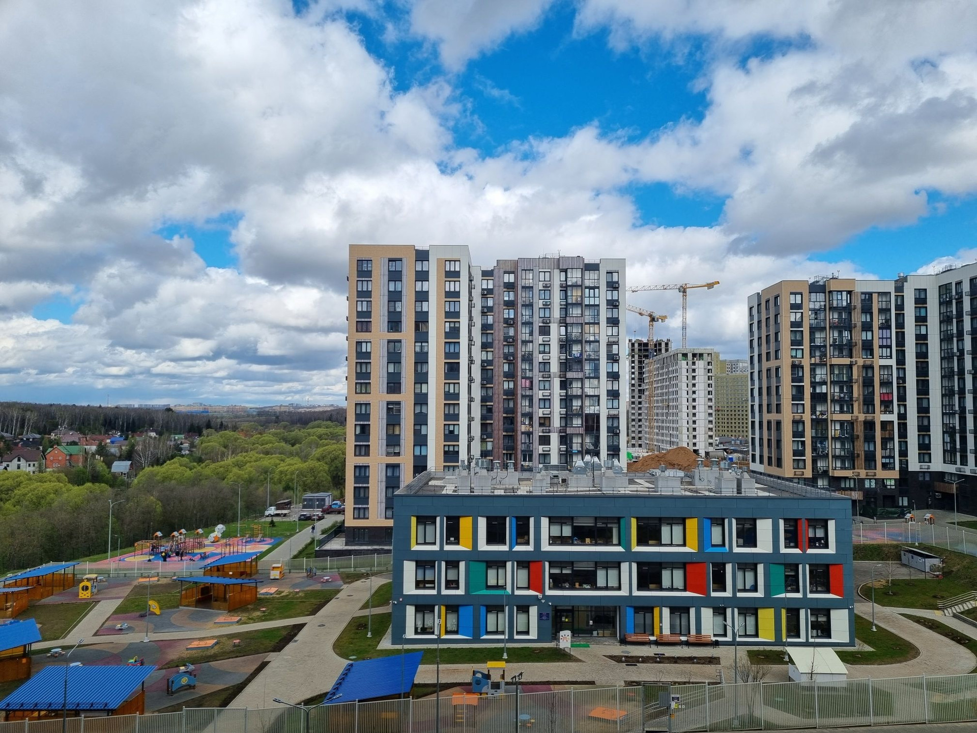 Продаю 2-х комнатную квартиру распашонку в ЖК Эко Бунино, проспект Куприна, 40к2. Без отделки.  Новая Москва, 10 км от МКАД. Новый ЖК, почти все дома построены, инфраструктура развивается, уже работают детский сад (на фото во дворе) и школа, строится ещё одна школа. Открыто много продуктовых магазинов ( Вкус вилл, Пятёрочка, Магнит), аптеки, кафе, салоны красоты, пункты выдачи магазинов и т.д. Можно жить, никуда не выезжая))