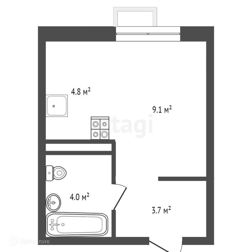 Общая площадь 21.6 м2