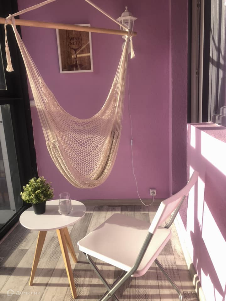 Главное достоинство, что в квартире расположился чудесный балкон, который оборудован гамаком.