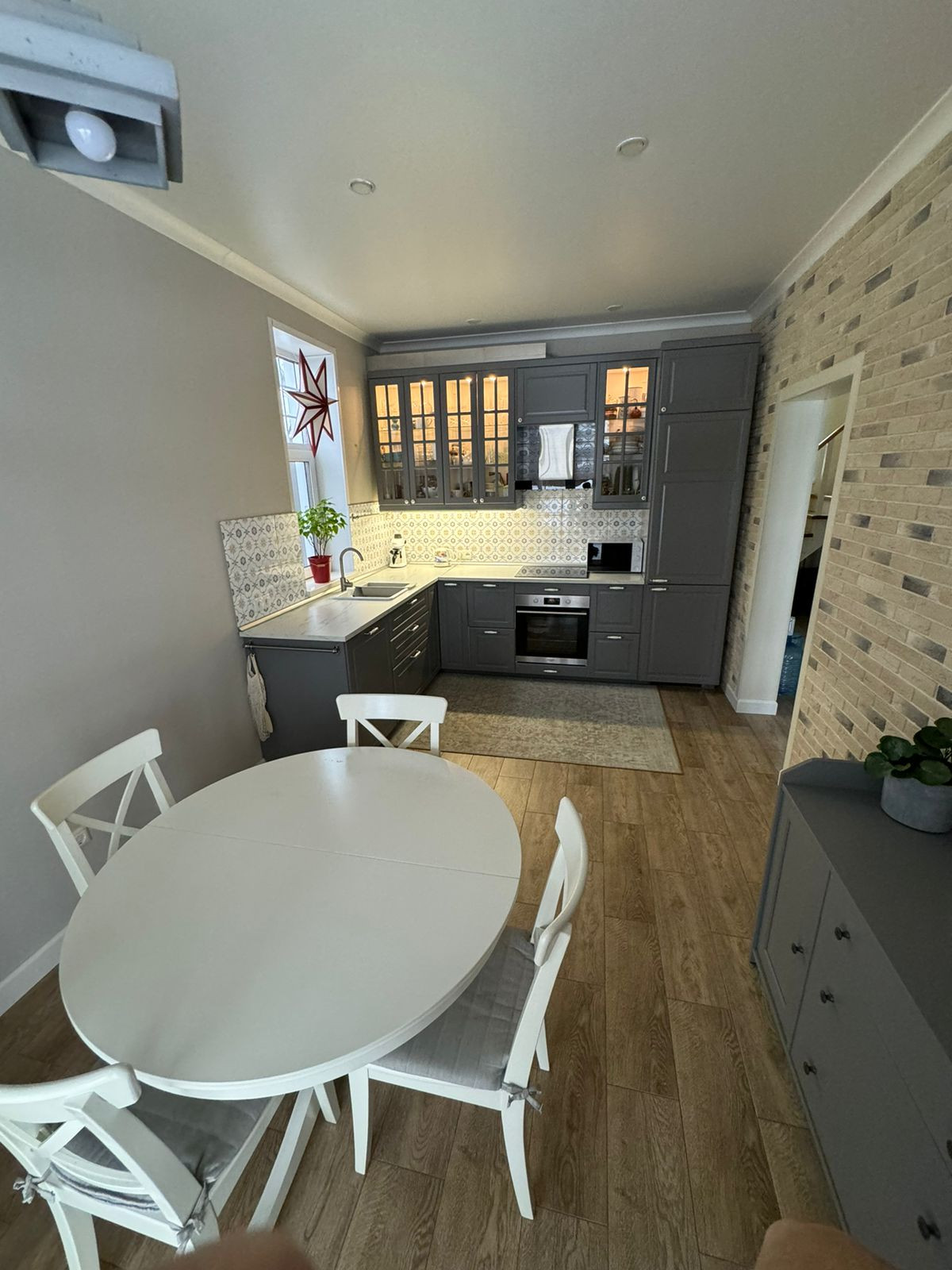 Московская область г.о. Солнечногорск д. Стрелино. Продаётся готовый двухэтажный дом площадью 115 м2. В доме сделан ремонт из качественных современных материалов, построен для постоянного проживания. Мебель и дополнительные аксессуары подобраны в едином стиле во всех помещениях что создает ощущение полноты и единства пространства. Прекрасный вариант для тех, кто желает купить уютный теплый дом для проживания или выходного досуга. Без лишних хлопот и вложений, для комфортного пребывания здесь всё готово. Общая площадь дома составляет 115 м. кв. Она равными долями распределена на оба этажа. На первом большая комната 20 м.кв, кухня-столовая 18 м. кв. санузел с душевой кабиной, бойлерная. На втором этаже три спальни и помещение под хозяйский санузел (коммуникации подведены, но пока используется как хозяйственная комната). Оба этажа полноценные, без скошенных стен и потолков. Дом полностью мебелирован и укомплектован хорошей техникой. Кухонный гарнитур с дорогими высокими фасадами, подсветкой, качественной столешницей и фартуком-плиткой. Всё покупали и делали для себя лично, ни на чем не экономили. Пол на первом этаже теплый, керамогранит. Высота потолков 2,9м, на второй этаж ведет лестница с балясинами, пол ламинат. Окна на первом этаже и комната и столовая - панорамные (в пол) очень органично вписываются в общую стилистику и придают помещениям дополнительный свет, шарм, достоинство. Фото реальные и полностью соответствуют действительности.