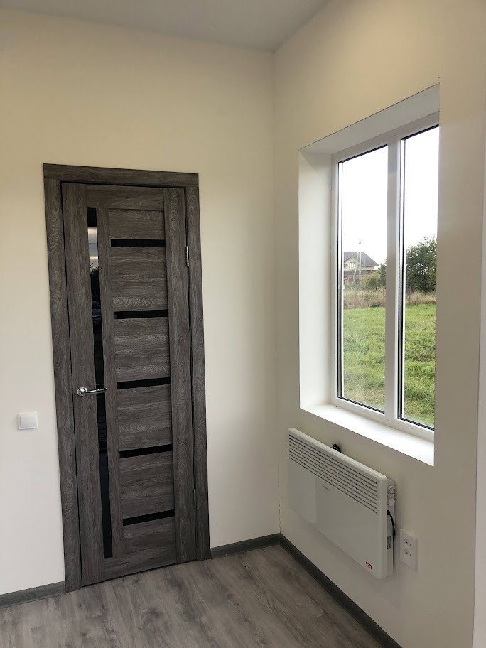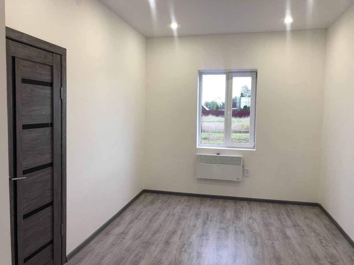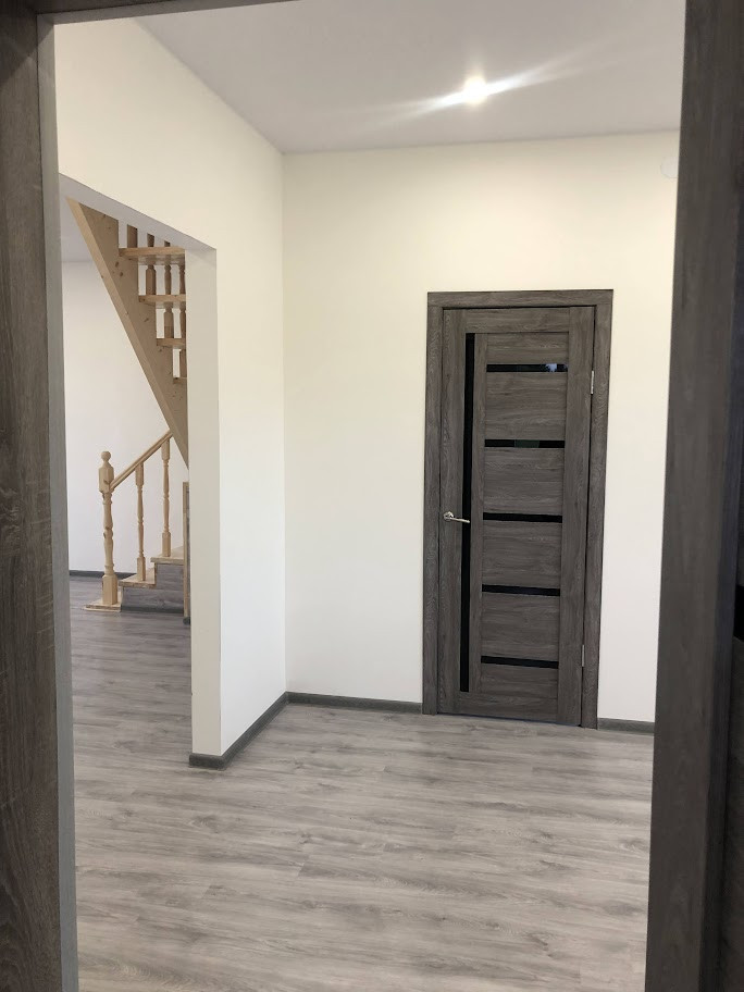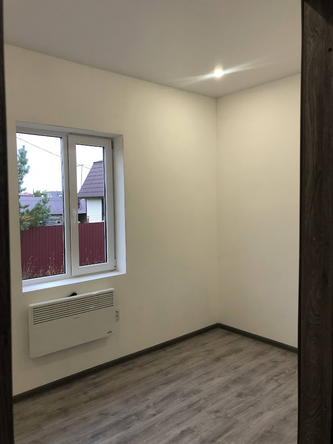Полная внутренняя косметическая отделка (см. фото), отделка стен - чистовая, ошпаклеваны и оштукатурены.