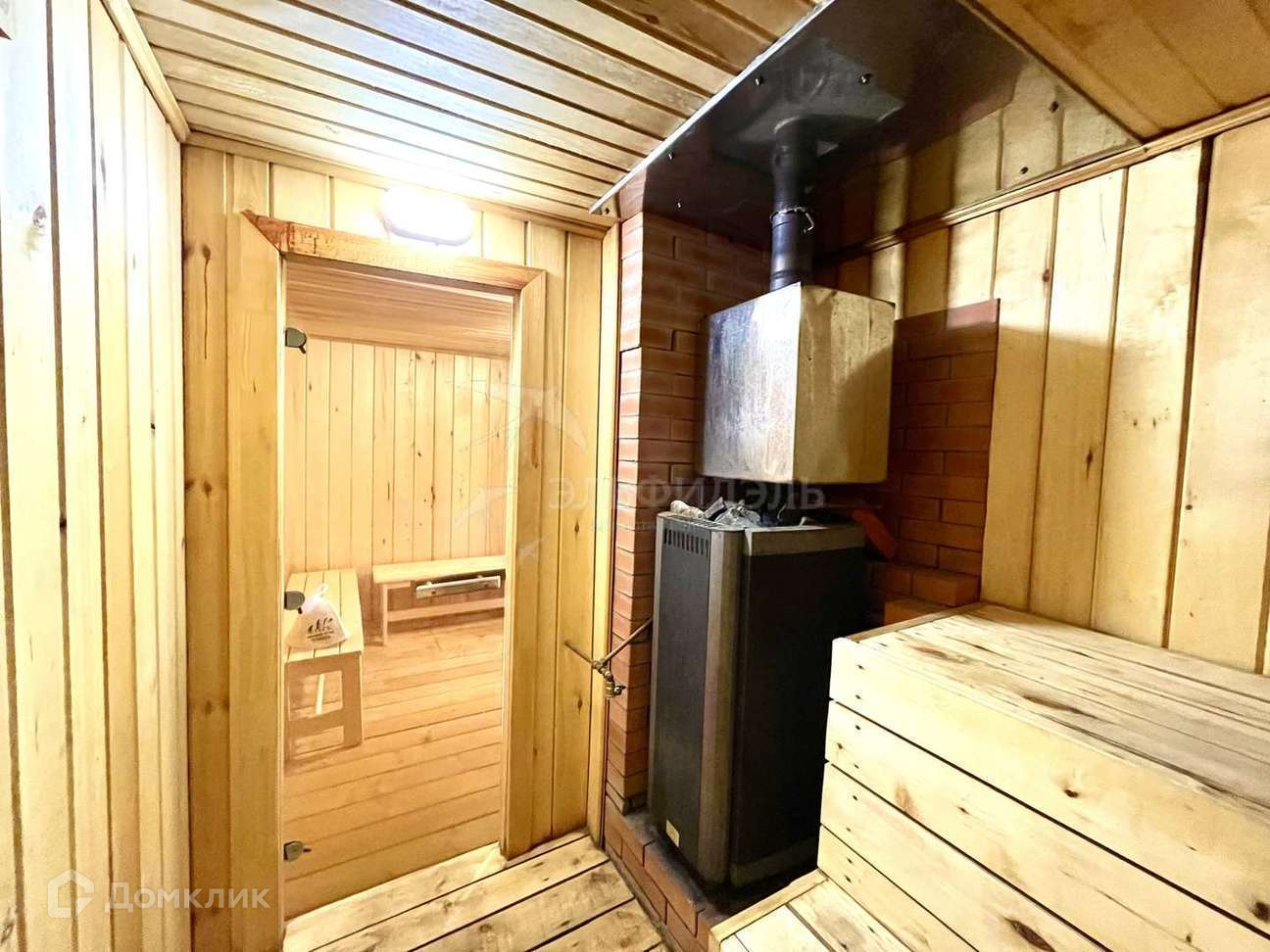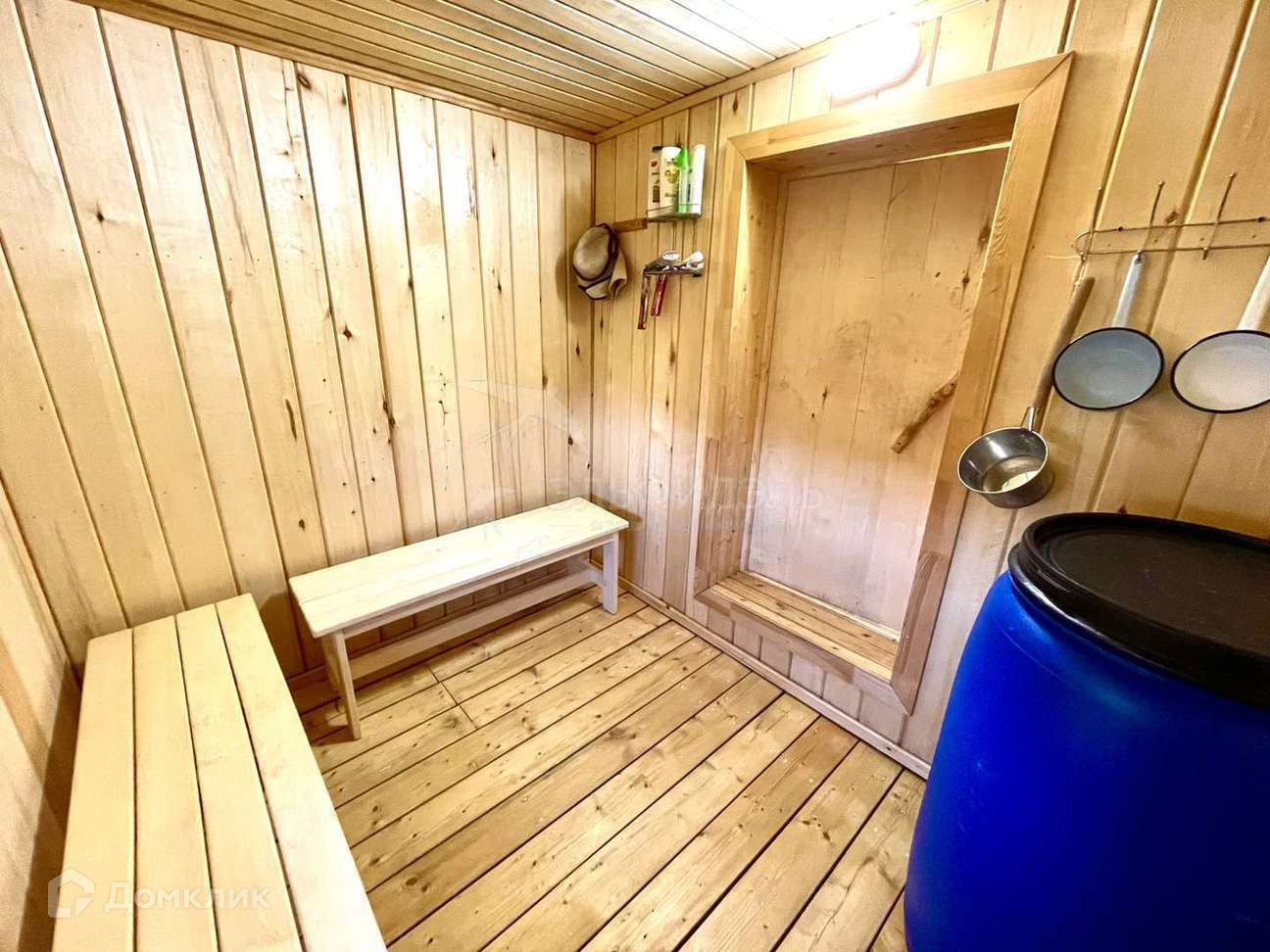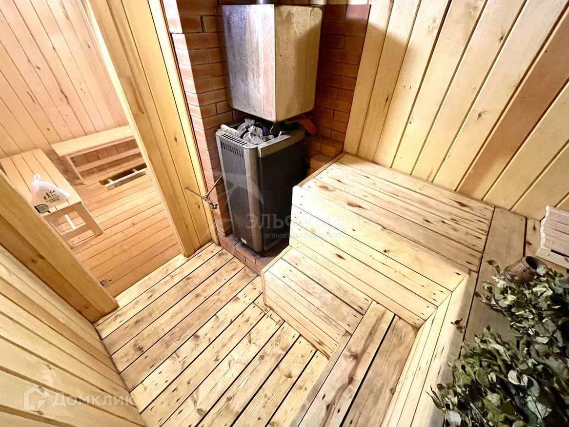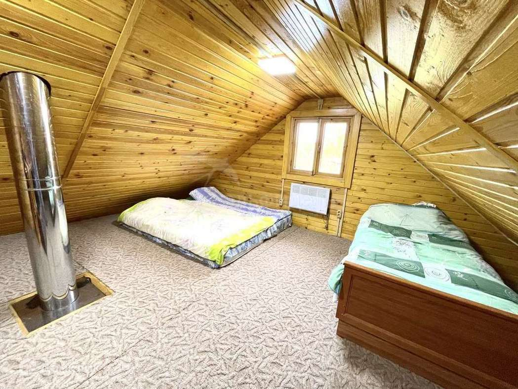 - Дом-баня 5*6 из бревна (обработано пропиткой), ленточный фундамент, крыша ондулин. На 1 этаже комната отдыха с лестницей на второй этаж, помывочная и парная. Парная обшита осиной. Установлена хорошая дровяная печь Костёр Релакс-21 Имеется бак с горячей водой и бочка на 200л для холодной воды. В бане есть система продухов. Вода с бани уходит в септик. На 2 этаже одна большая комната, которая отапливается за счёт трубы от печи, а так же дополнительно на двух этажах установлены конвектора. В дом проведено электричество.