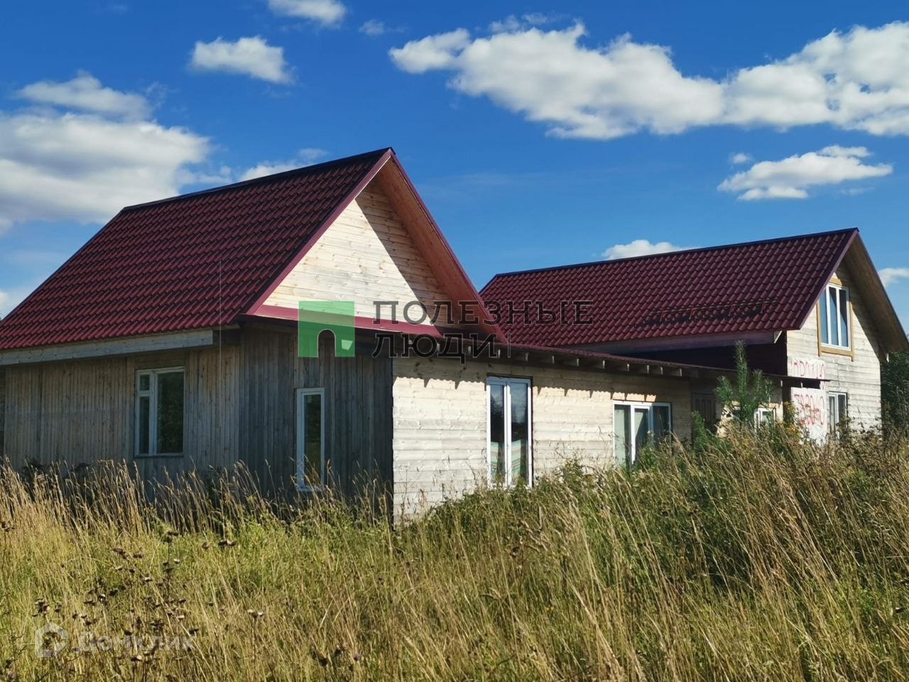ПЕРВОЕ СТРОЕНИЕ- ДОМ: бревенчатый, место под печку выделено, пол -утеплен керамзитом, второй этаж , кухня ,коридор соединяющий два строения, под одну крышу, в нем два выхода во двор и на дорогу.,